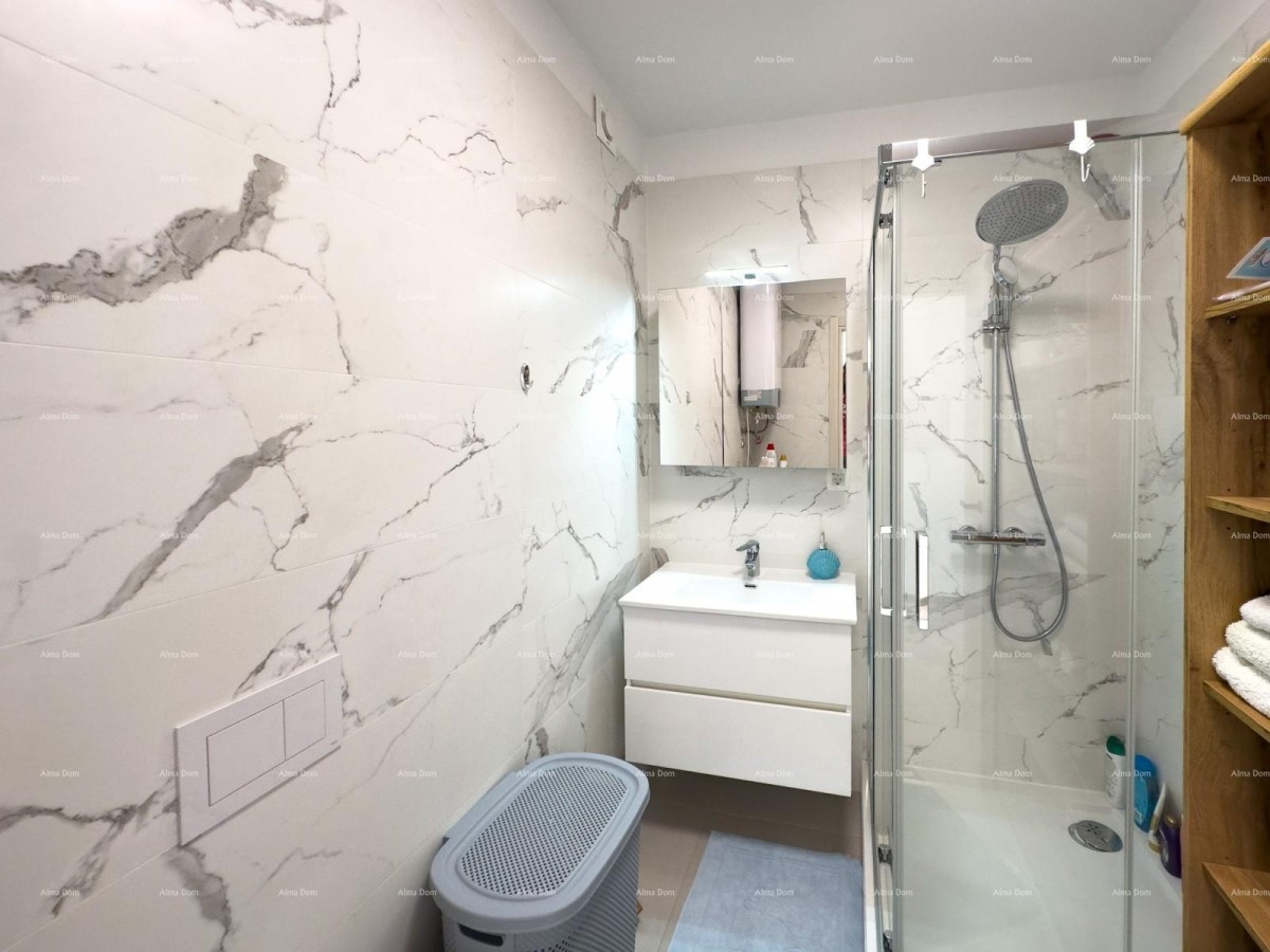 V obývacím pokoji a koupelně je podlahové vytápění, klimatizace, sítě proti hmyzu a parkovací místo před budovou.