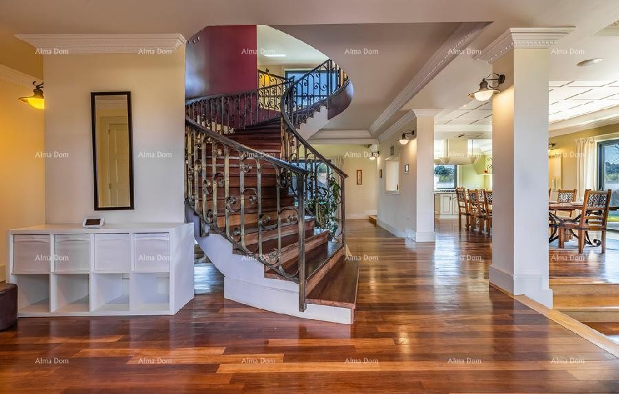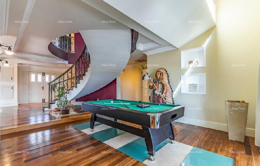 Im Erdgeschoss der Villa befindet sich ein geräumiges Wohnzimmer mit Billard und Tischtennis, Küche, Büro, ein Badezimmer und eine Treppe nach oben.