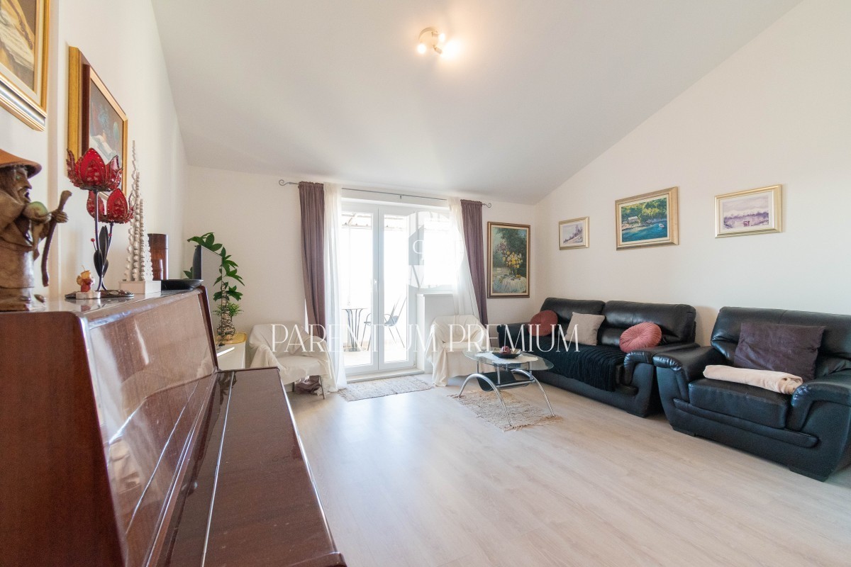 Die Wohnung besteht aus einem Wohnzimmer mit Esszimmer und separater Küche, 3 Schlafzimmern, einem Badezimmer, einer Galerie im zweiten Stock, die als zusätzliches Schlafzimmer oder Abstellraum genutzt werden kann, und einer schönen Terrasse mit einem wirklich bezaubernden Ausblick Blick auf die Altstadt von Poreč und das Meer.