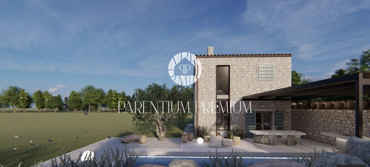 In der Nähe der Stadt Buja, nicht weit von der schönen istrischen Stadt Momjana entfernt, befindet sich diese autochthone Designer-Steinvilla mit Swimmingpool. Dieses Haus befindet sich auf einem beeindruckenden Grundstück von insgesamt 15.000 m2, das den zukünftigen Eigentümern grenzenlose Ruhe und einen idyllischen Urlaub sowie den Genuss wunderschöner Natur bietet.