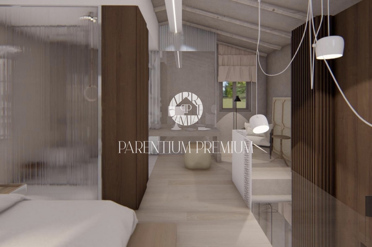 Die Villa besteht aus 2 Etagen, die fantastisch dekoriert und mit moderner Architektur gestaltet sind, die zu diesem Gebäudetyp mit vielen istrischen Details passt.