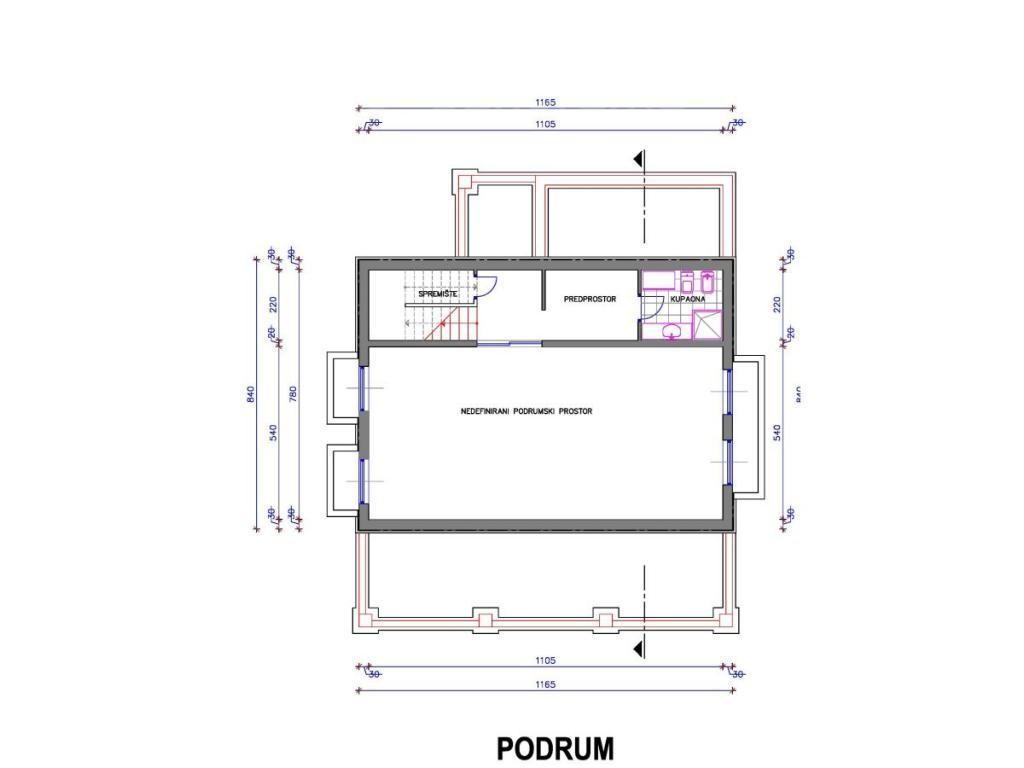 Es besteht aus Erdgeschoss, Obergeschoss und Keller und hat eine Fläche von ca. 294m2.