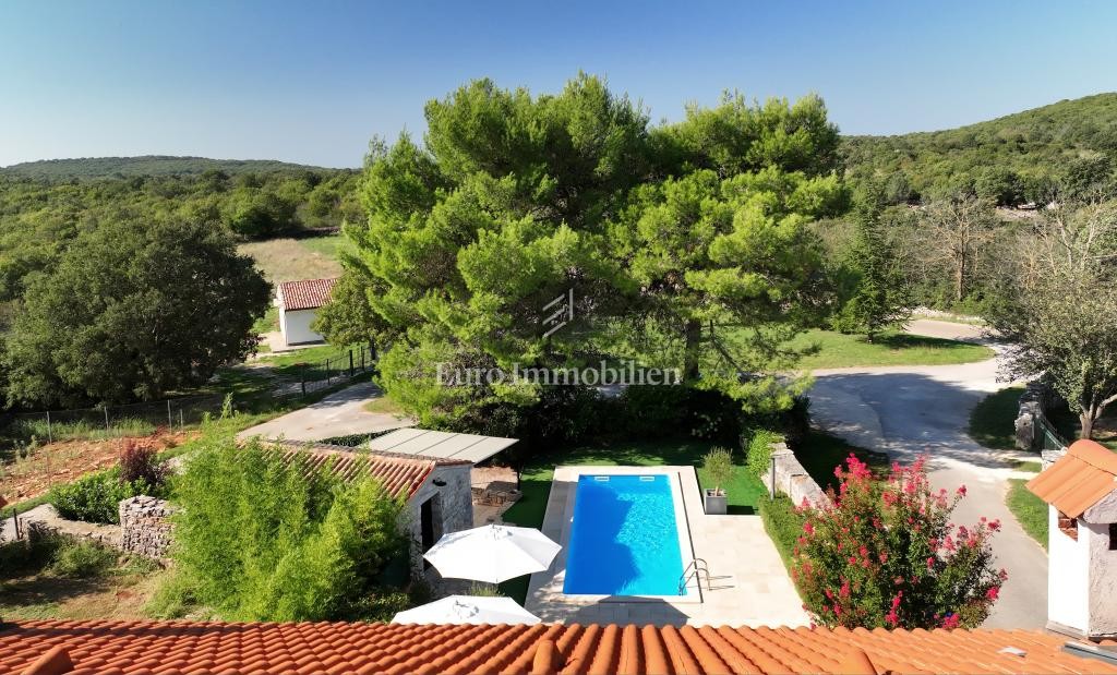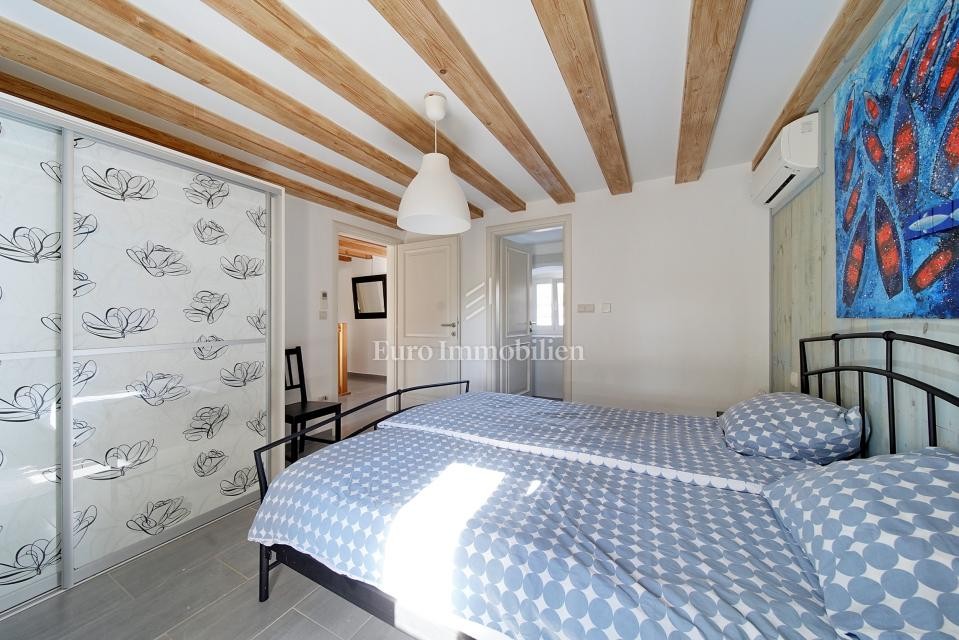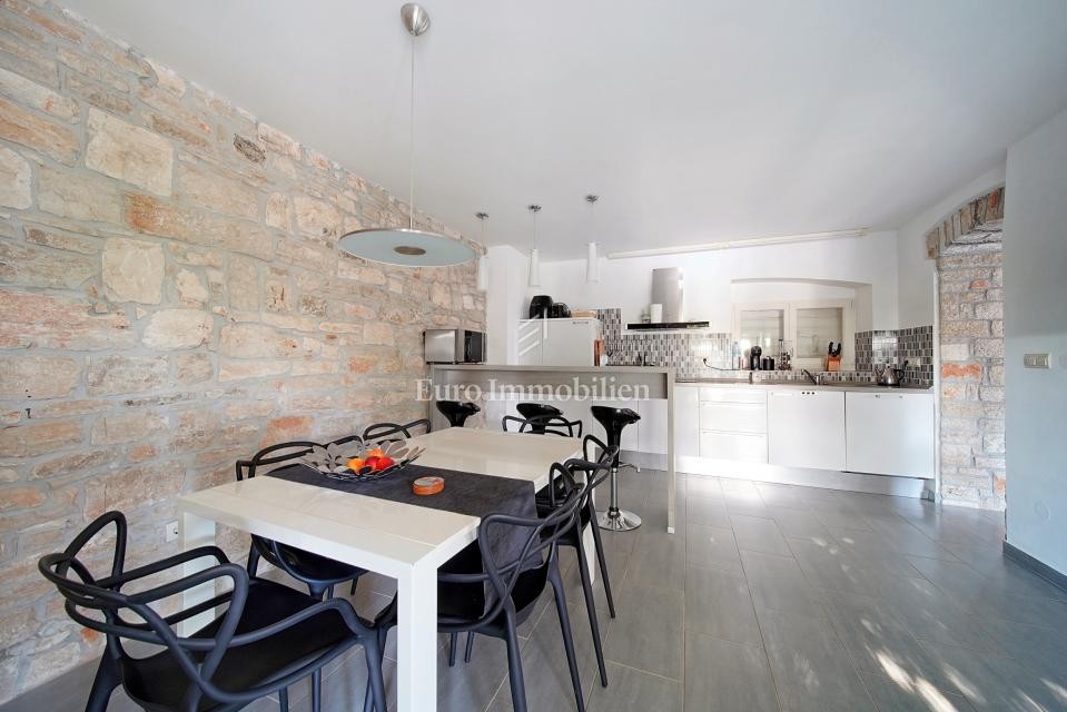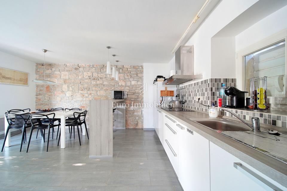 Ein renoviertes Steinhaus zum Verkauf in der Nähe von Bale in Istrien. Es wurde 2011 komplett renoviert und hauptsächlich in den Sommermonaten genutzt. Ein wunderschön eingerichtetes Haus von ca. 170 m2 befinden sich auf einem Grundstück von 656 m2. Es erstreckt sich über drei Etagen: Erdgeschoss, Obergeschoss und Dachgeschoss. Der Eingang zum Haus befindet sich im Erdgeschoss. Im Erdgeschoss mit einer Fläche von 66,00 m2 befinden sich ein Wohnzimmer, eine Küche mit Esszimmer, ein Badezimmer und eine Eingangshalle. Eine interne Holztreppe führt in den ersten Stock von 52,00 m2, wo sich zwei Schlafzimmer mit Badezimmern befinden. Eine interne Holztreppe führt zum Dachboden mit einer Fläche von 52,00 m2, wo sich zwei Schlafzimmer und ein Badezimmer befinden. Das Äußere des Hauses wurde so renoviert, dass die Steinstruktur der Wände betont wurde, und an den Fenstern wurden hochwertige Holzschreinereien angebracht. Der Innenraum ist in einem modernen Stil dekoriert. Im Vorgarten, im mediterranen Stil gestaltet, befindet sich ein ca. 24 m2, eine Sonnenterrasse und ein Platz zum Entspannen. Im Hinterhof gibt es einen kleinen Parkplatz für mehrere Fahrzeuge, außerdem gibt es eine Terrasse, von der aus man die Halle betreten kann. Der Parkplatz ist durch ein motorisiertes Metalltor verschlossen. Im Garten befindet sich auch ein Gartenhaus aus Stein. Die Immobilie ist komplett für die touristische Vermietung ausgestattet und mit drei Sternen kategorisiert.