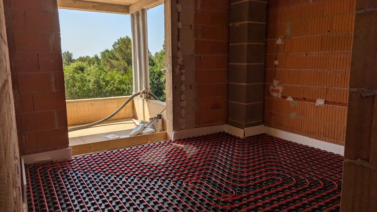 Das Haus besteht aus einem Eingangsflur, Badezimmer, Hauswirtschaftsraum, Schlafzimmer und einem geräumigen Wohnzimmer mit Essbereich und Küche mit Zugang zur Terrasse und zum Pool. Im ersten Stock befinden sich zwei Schlafzimmer mit eigenen Badezimmern und eine gemeinsame überdachte Terrasse. Die Heizung erfolgt über eine zentrale Fußbodenheizung mit Wärmepumpen, und zur Kühlung sind Klimaanlagen in jedem Zimmer und im Wohnzimmer vorgesehen.