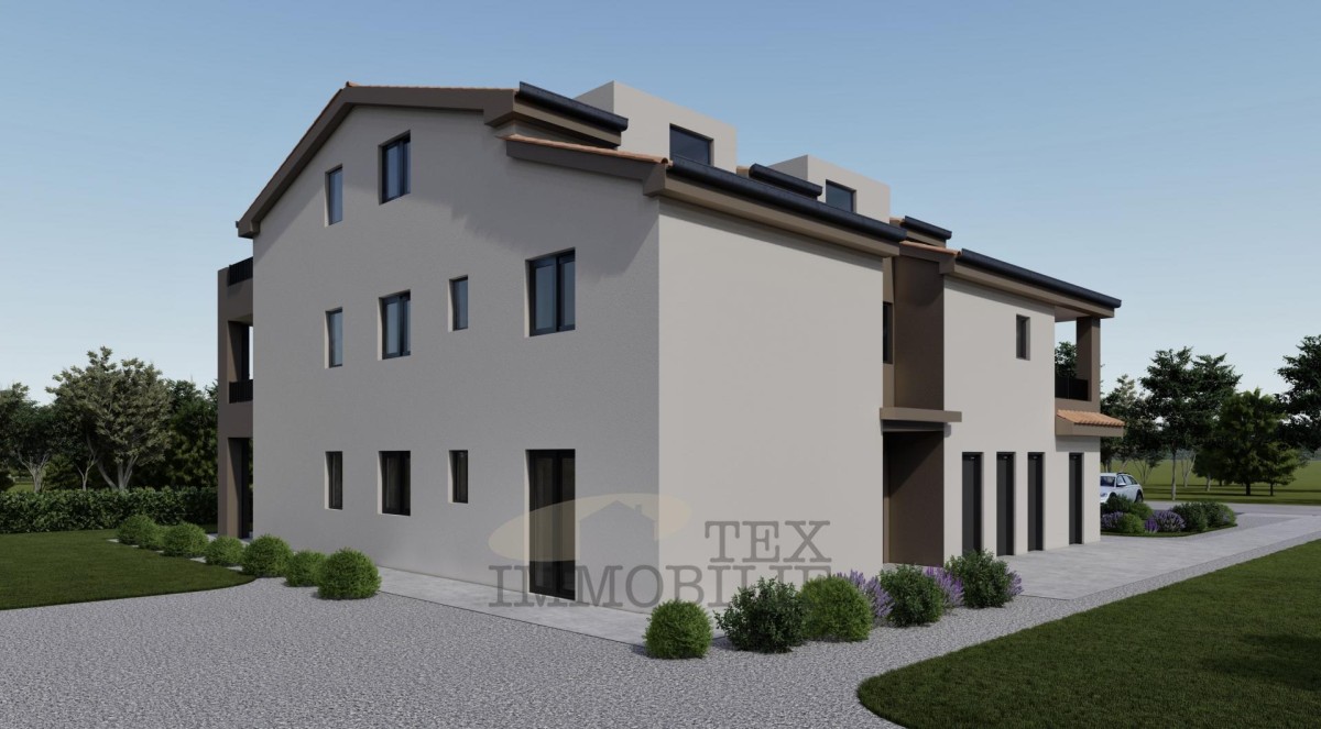 Zu verkaufen ist eine moderne Wohnung mit zwei Schlafzimmern im ersten Stock, 9 Kilometer vom Zentrum von Poreč und dem Meer entfernt.
