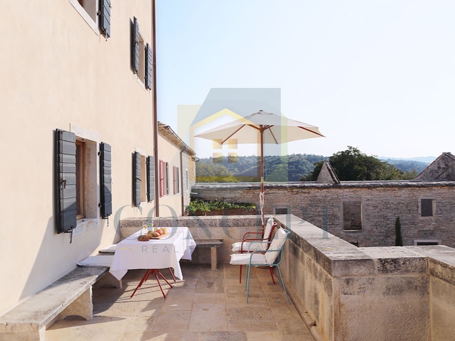 Zu verkaufen ist ein historisches venezianisches Anwesen in ruhiger Lage nahe Buje, das über die Jahrhunderte erweitert und renoviert wurde und 1891 sein heutiges Aussehen erhielt. Das Anwesen vereint historischen Charakter und modernen Komfort, mit insgesamt 3.600 m² Grundstück und weiteren 12.000 m² gepachtetem Ackerland mit Wiesen und Obstbäumen, die Ruhe, eine natürliche Umgebung und reichlich saisonale Früchte bieten.
