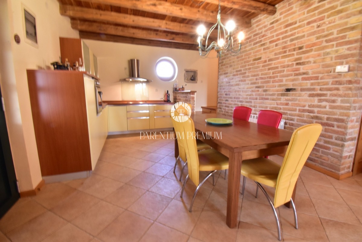 In einem ruhigen istrischen Dorf, unweit von Poreč, befindet sich dieses charmante Steinhaus, das vollständig im traditionellen istrischen Stil renoviert wurde und Authentizität sowie ganzjährigen Wohnkomfort bietet.