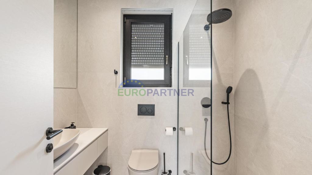 Die Villa verfügt über drei Schlafzimmer, von denen zwei über ein eigenes Bad verfügen. Dann haben wir eine Gästetoilette, einen Technikraum, der von außerhalb der Villa betreten werden kann, und einen Mini-Kleiderschrank.