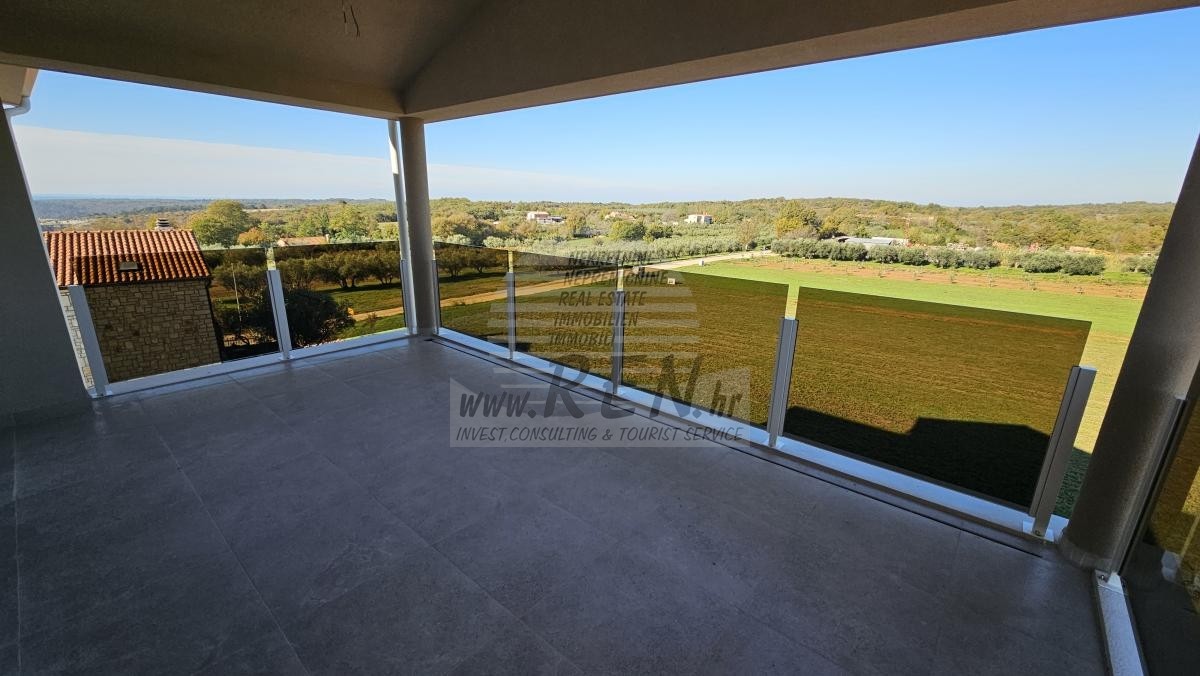 Zum Verkauf steht eine moderne Doppelhaushälfte mit Swimmingpool, gelegen in einer ruhigen Umgebung nahe Novigrad. Die Villa verbindet modernes Design, hohen Wohnkomfort und mediterrane Atmosphäre. Hochwertige Materialien und klare architektonische Linien verleihen der Immobilie eine elegante Ausstrahlung, mit einem herrlichen Meerblick von den oberen Etagen.