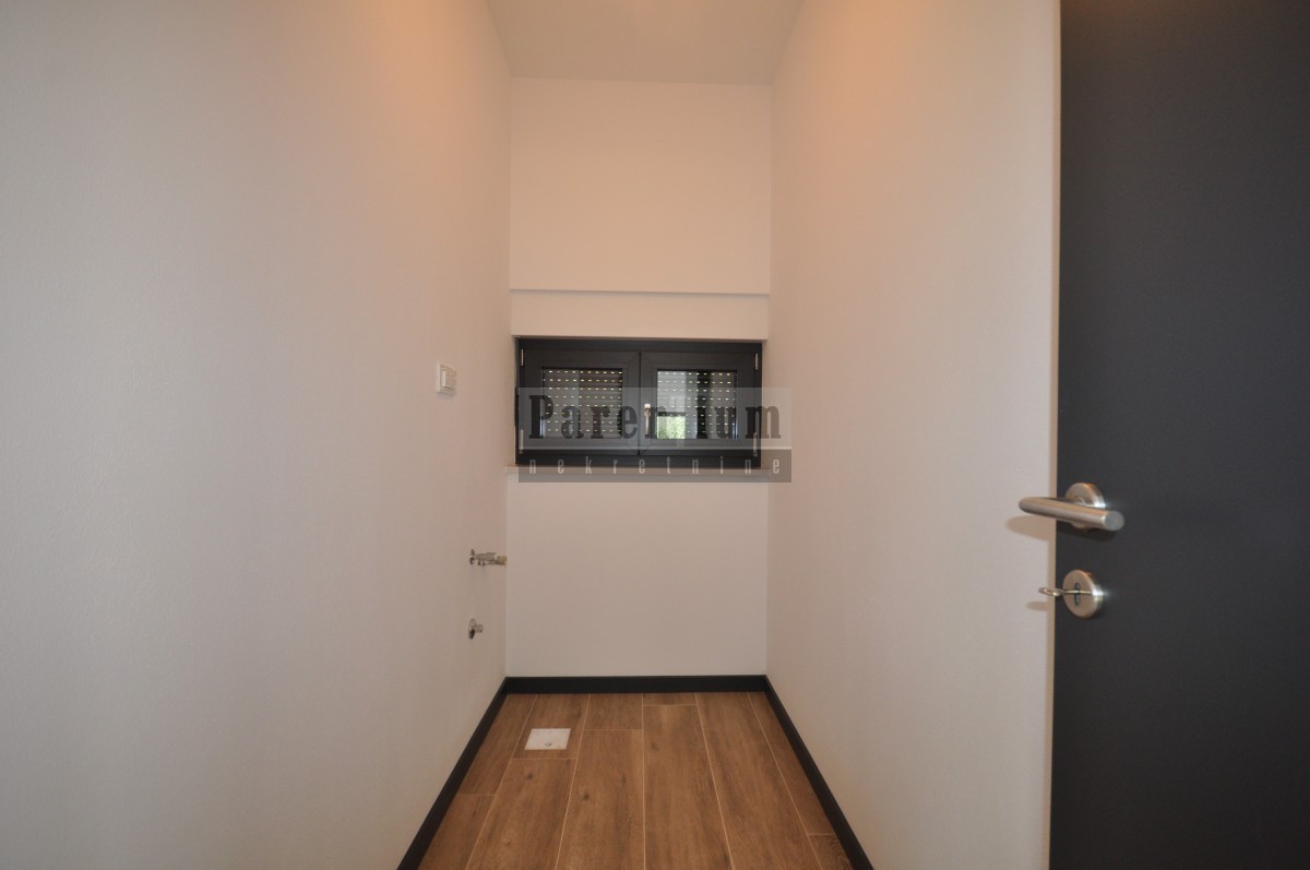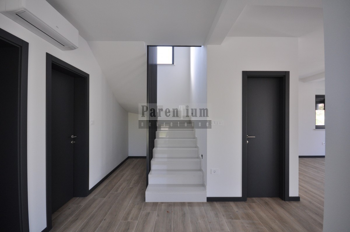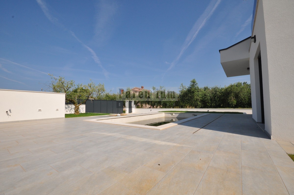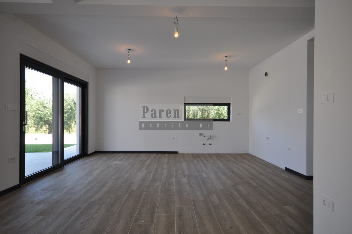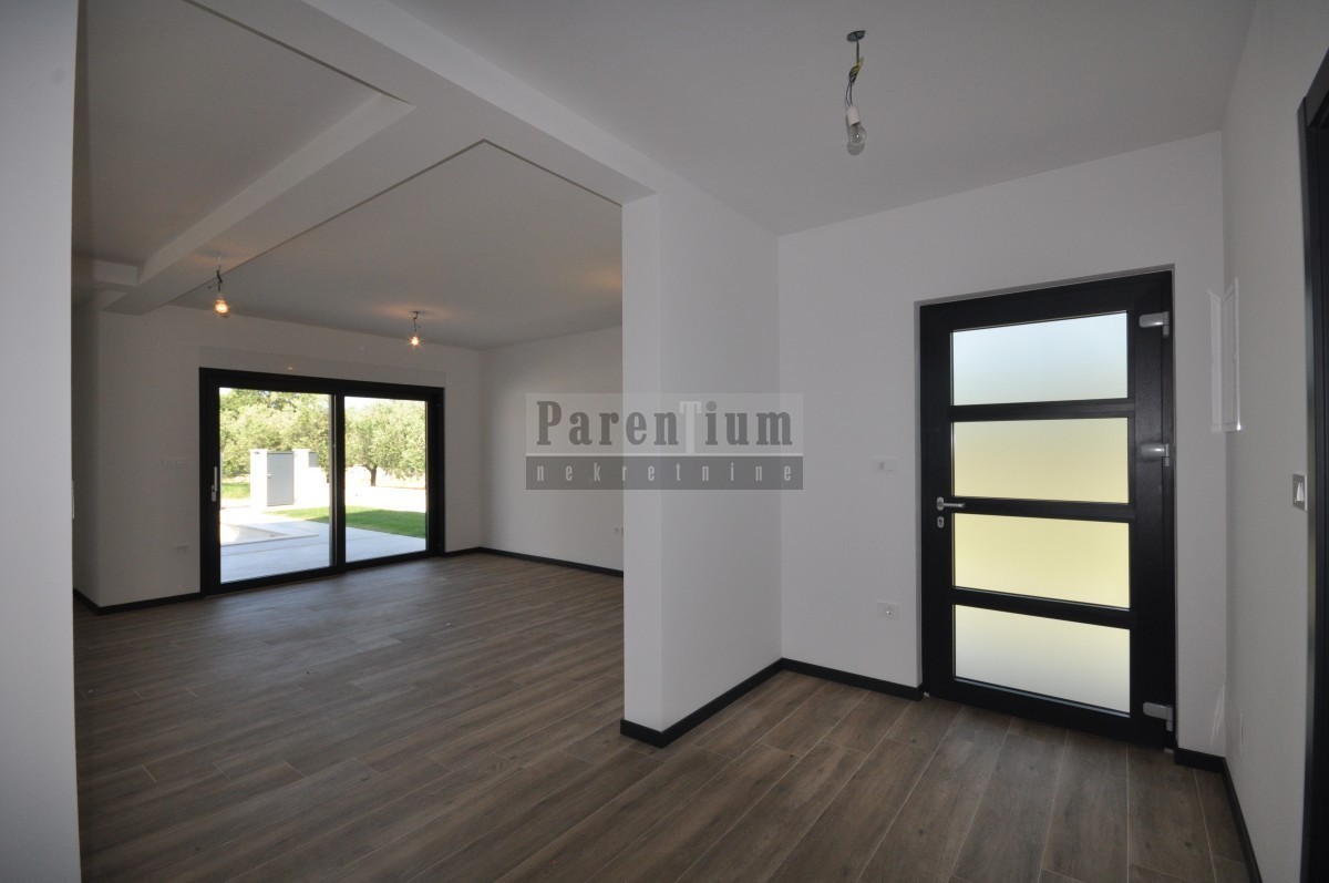 Dieses schöne, moderne Haus mit Swimmingpool steht in einer kleinen Stadt in der Nähe von Poreč zum Verkauf. Das Haus liegt am Rande des Dorfes, in einer ruhigen Straße.