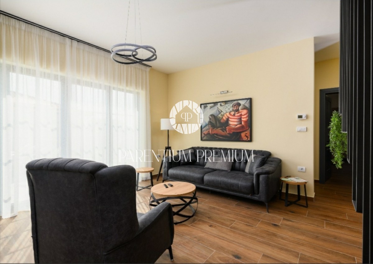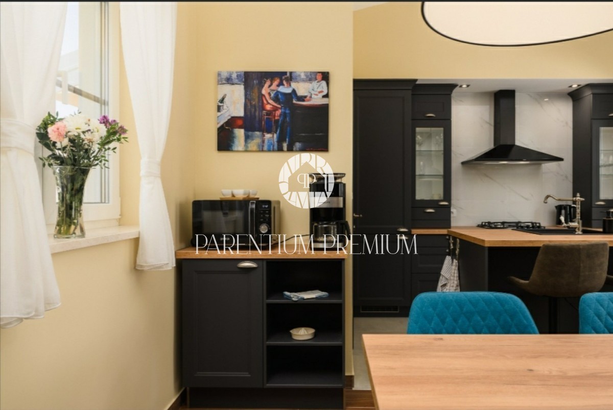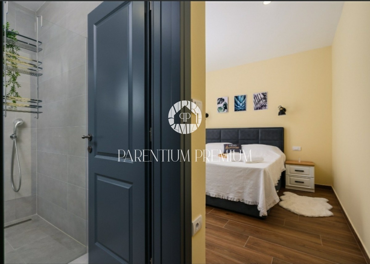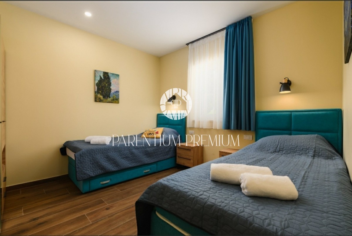 Diese neue Villa mit einem Pool von 180 m2, nur 15 Autominuten vom Zentrum von Rovinj entfernt, befindet sich in einem kleinen istrischen Dorf auf einem sanften Hügel. Das Haus repräsentiert eine Kombination aus autochthoner istrischer Architektur und modernem Design.