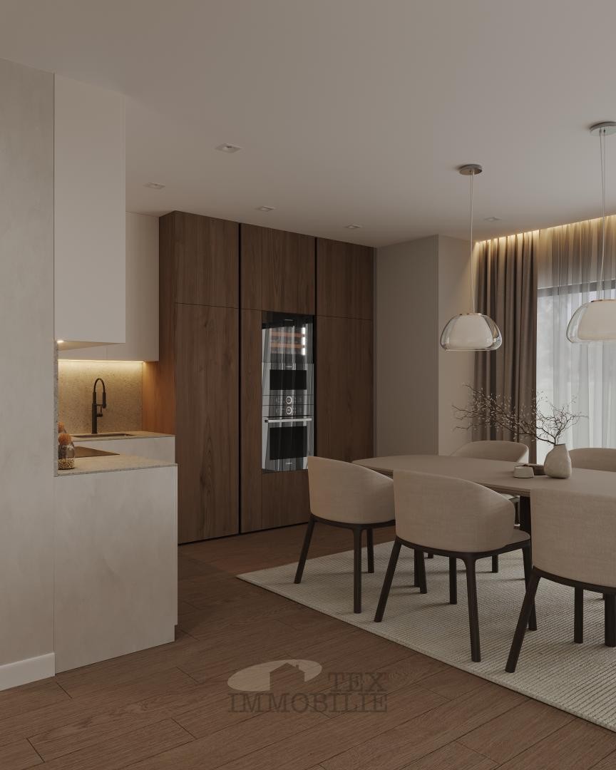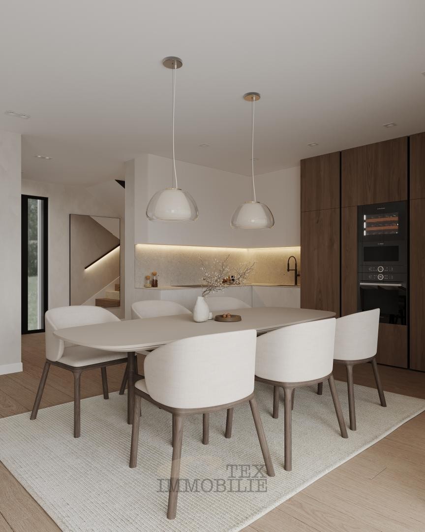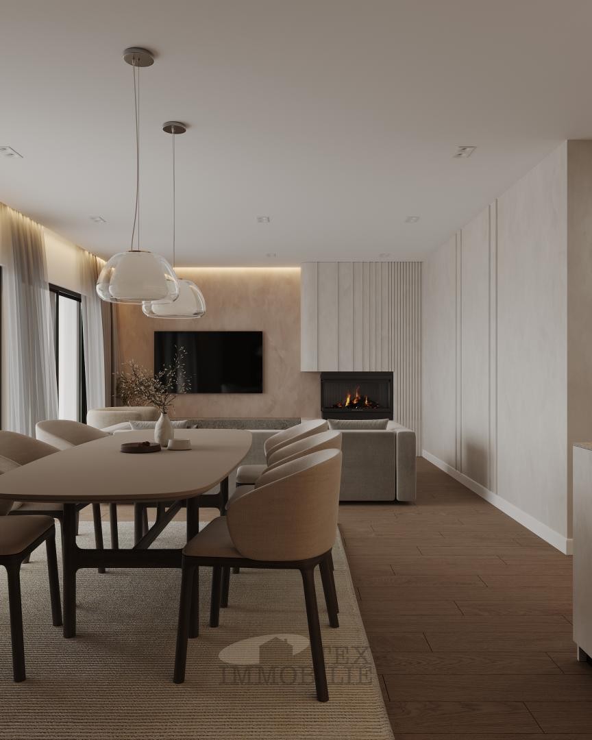Treten Sie ein in eine Welt der Eleganz und Modernität, wo hochwertige Materialien und ein kantiges Design eine anspruchsvolle Atmosphäre schaffen. Drei Schlafzimmer, jedes mit eigenem Bad, bieten luxuriösen Komfort und Privatsphäre. Genießen Sie geräumige Wohnbereiche, die mit natürlichem Licht durchflutet sind, einschließlich einer offenen Küche, die sich ideal für kulinarische Köstlichkeiten eignet. Ein zentraler Kamin sorgt für gemütliche Zusammenkünfte, während zeitgenössische Designelemente Wärme und Stil im gesamten Raum hervorrufen.
