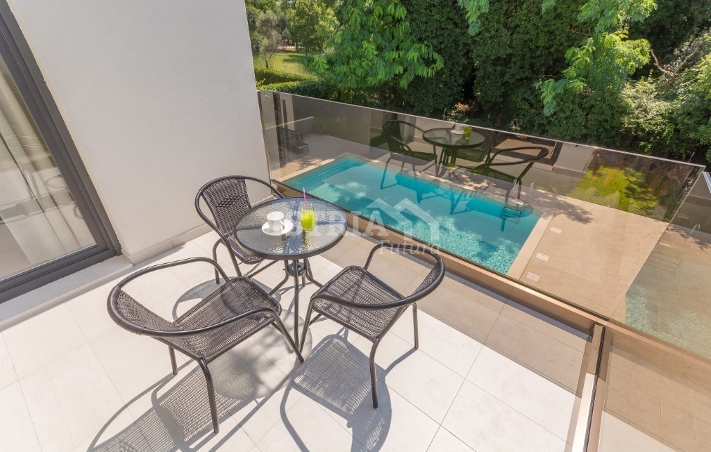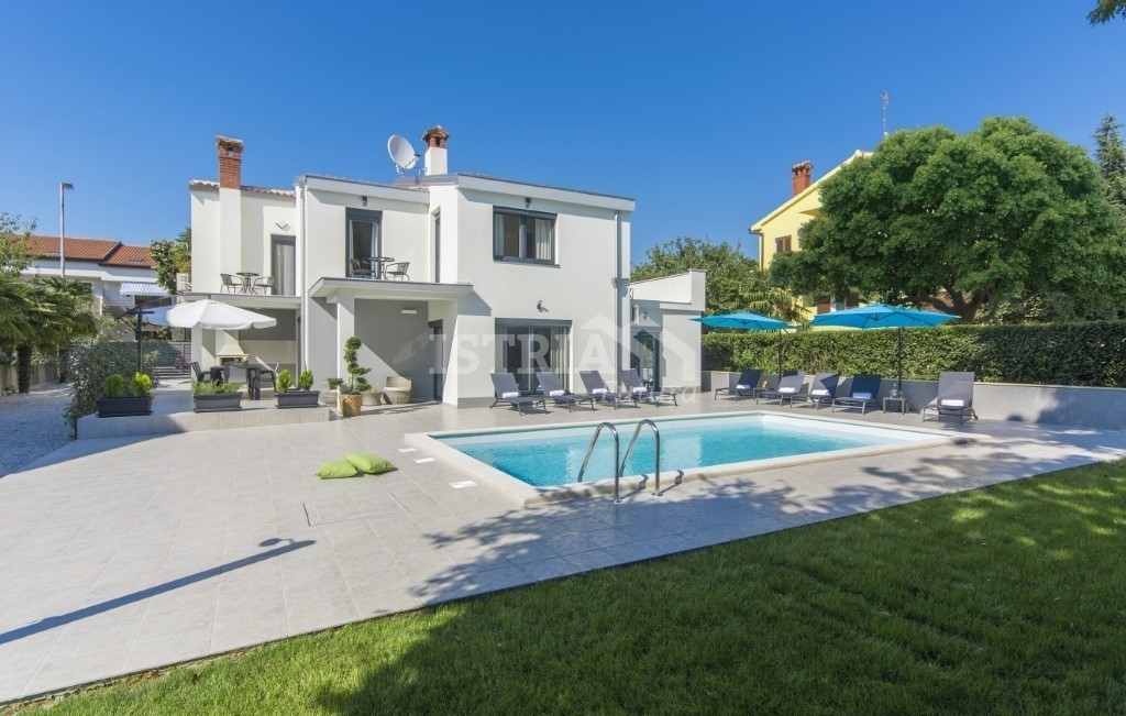 Zu verkaufen, eine schöne freistehende Villa von 250 m2 auf einem Grundstück von 700 m2 mit einem Pool von 32 m2, nur 300 m vom Meer und 1,5 m vom Zentrum von Poreč entfernt.