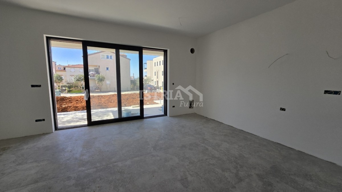 Zum Verkauf steht eine wunderschöne Wohnung mit einer Nettofläche von 74 m2 im Erdgeschoss eines kleinen Wohngebäudes mit nur 3 Wohnungen, nur 1000 m vom Meer und 3 km vom Zentrum von Poreč entfernt.