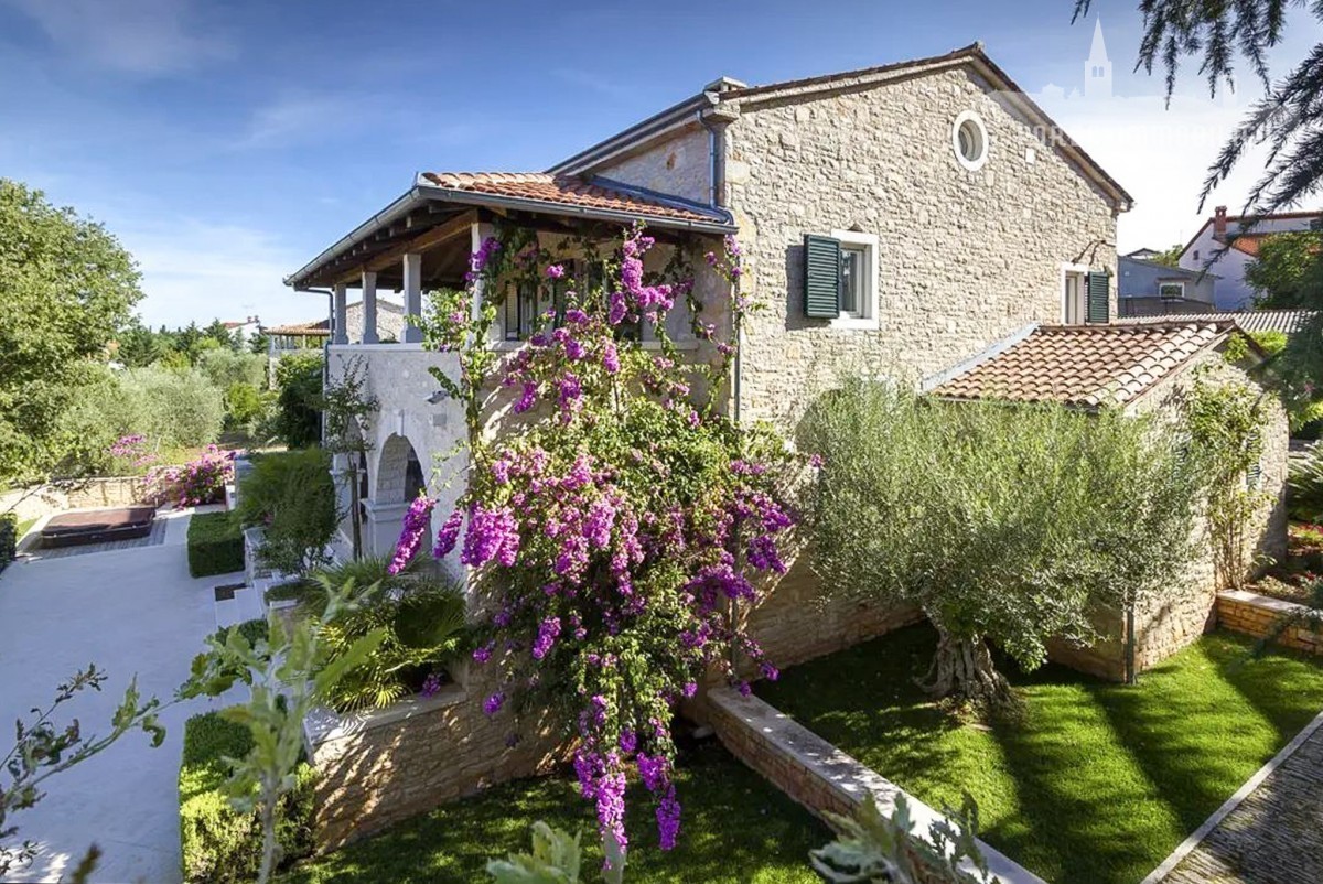 Eine außergewöhnliche rustikale Villa mit Swimmingpool, verwöhnendem Whirlpool, einladender Sommerküche, gemütlicher Taverne und bezauberndem Panoramablick auf das majestätische offene Meer, alles nur 2 km von der bezaubernden Stadt Poreč entfernt. Dieses außergewöhnliche Anwesen, das sich über 1500 m² erstreckt, begrüßt Sie mit einem ferngesteuerten Tor, das den malerischen Blick auf ein bezauberndes Steinhaus, einen sorgfältig gepflasterten Innenhof und einen bezaubernden Garten freigibt, der mit einer Fülle mediterraner Flora geschmückt ist, darunter Hortensien, Bougainvilleen, Kiefern, Rosmarin, Jasmin und mehr.