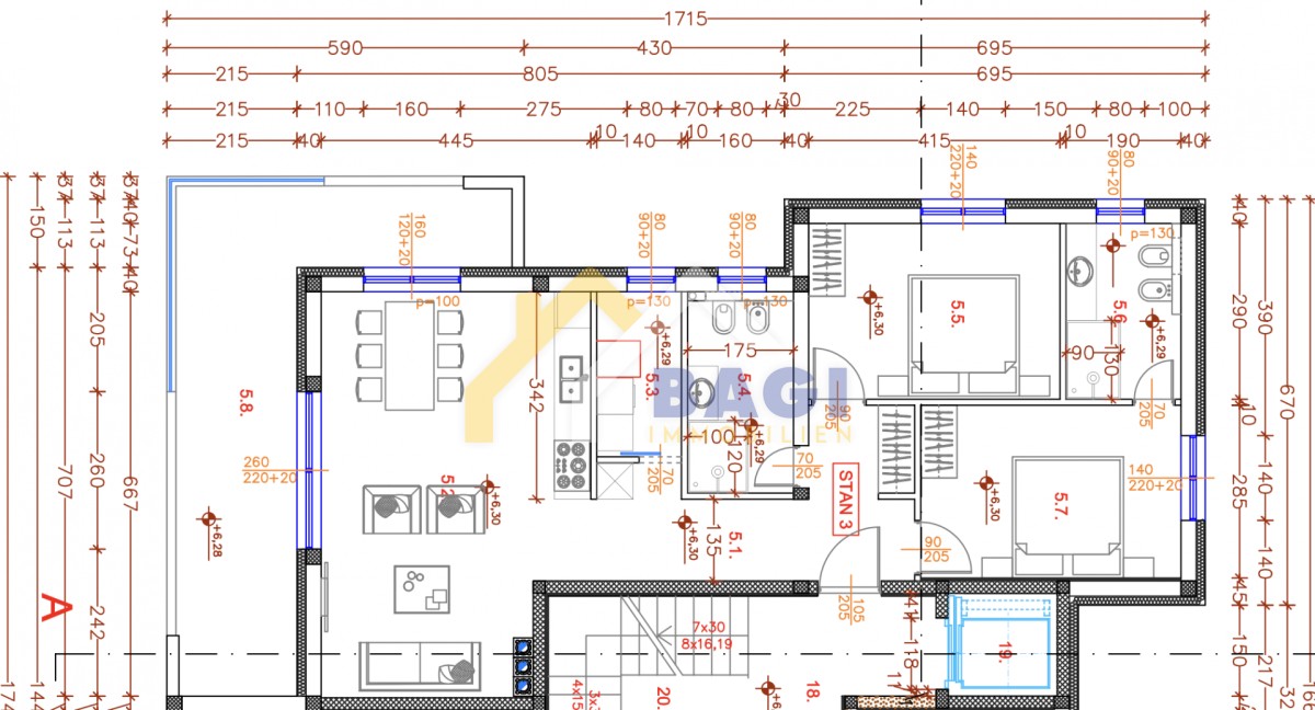Das Gebäude wird einen hohen Standard haben, ausgestattet mit einer Solaranlage, Fußbodenheizung, elektrischen Rollläden, einem Aufzug, PVC-Dreischichtschreinerei, 15 cm Isolierung...