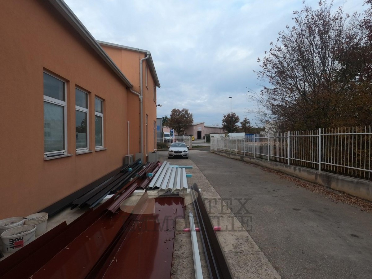 Diese Industriehalle verfügt derzeit über 3 Sanitäranlagen, eine Kantine, eine Küche, einen Ausstellungsraum sowie Büros von 80 m2, eine Produktionsfläche von 250 m2, zusätzliche Räume im Keller von 80 m2 und einen Stock von 80 m2.