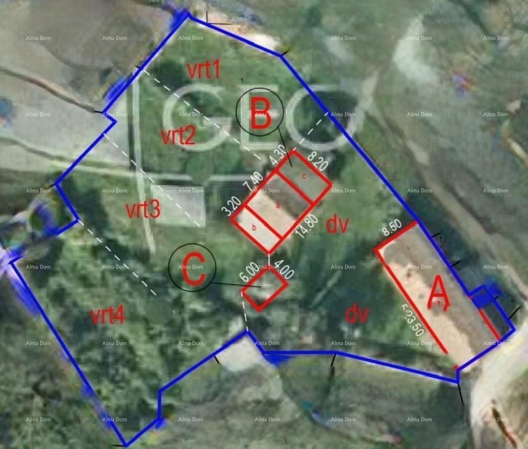 Zum Verkauf steht ein Baugrundstück von ca. 3000 m2 mit bestehenden Gebäuden A B C, die über Nutzungsgenehmigungen verfügen.