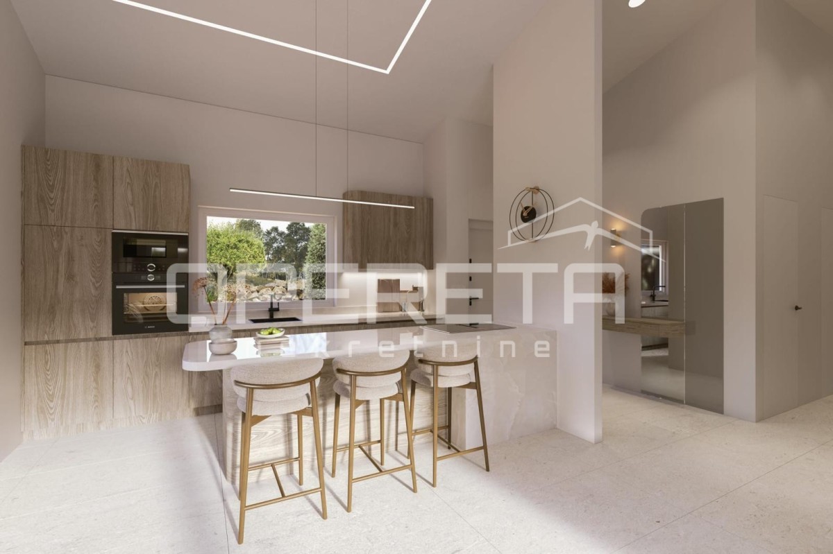 Ein modernes ebenerdiges Haus mit rustikalem Charme befindet sich im Herzen Istriens, in der ruhigen Siedlung Kaštelir, nur eine zehnminütige Fahrt von der Adriaküste und dem charmanten Poreč entfernt. Als Teil eines Komplexes von drei Reihenhäusern vereint diese Immobilie die Funktionalität eines Familienhauses mit dem Potenzial für eine touristische Investition.