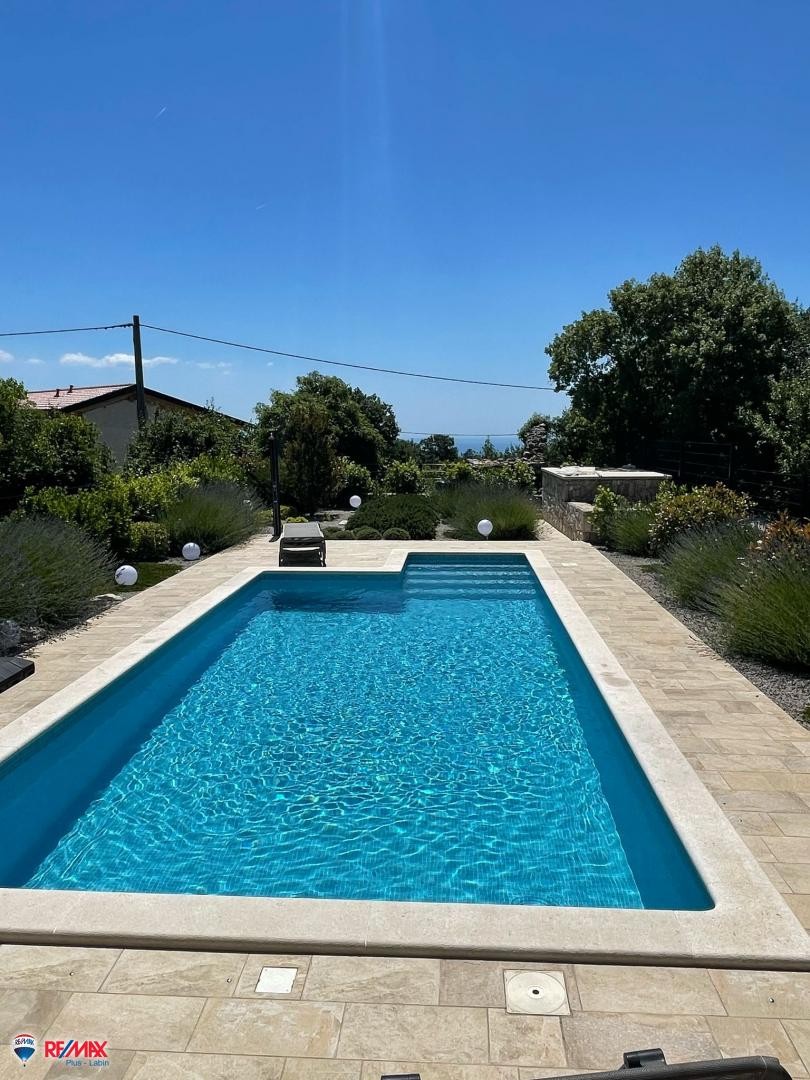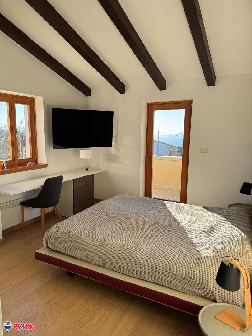 Im oberen Stockwerk befinden sich drei helle Schlafzimmer, die alle mit einem traumhaften Ausblick punkten. Jedes Zimmer hat direkten Zugang zum Balkon, der einen ungestörten Blick auf die malerische Ostküste und die türkisfarbene Adria bietet. Ein großzügiges en suite Bad, ein zusätzliches Gäste-Bad und eine praktische Außentreppe, die direkt zum Pool führt, runden das Obergeschoss ab – ideal für unbeschwerte Sommertage.