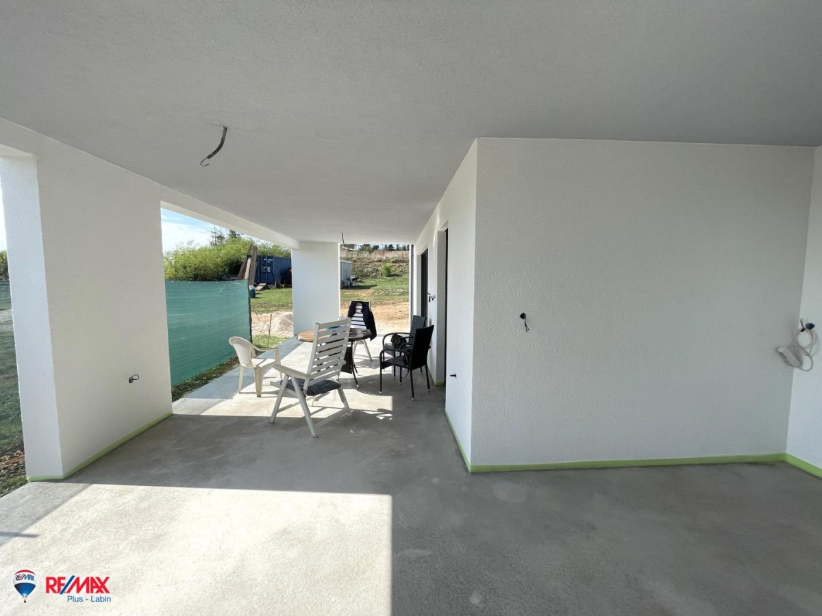 Dieses Niedrigenergie-Fertighaus liegt an einem ruhigen Ort, 10 km von Labin entfernt.