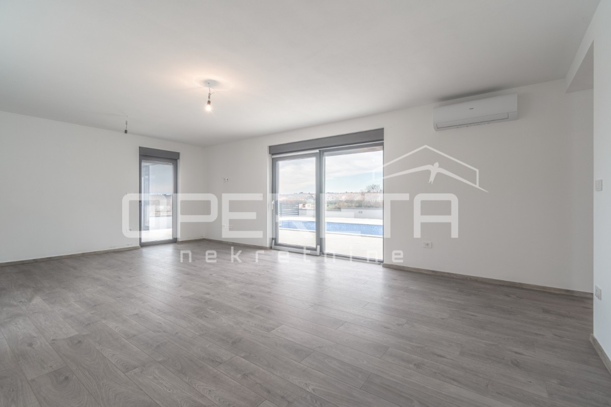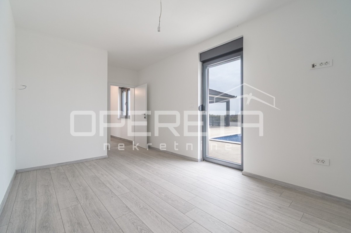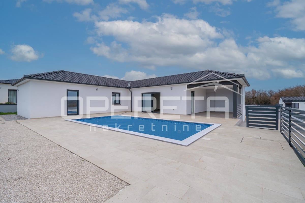 In ruhiger Lage in Marčana, am Rande des Baugebiets, steht ein modernes Haus zum Verkauf. Das Haus wurde 2024 erbaut und befindet sich auf einem 650 m² großen Grundstück.