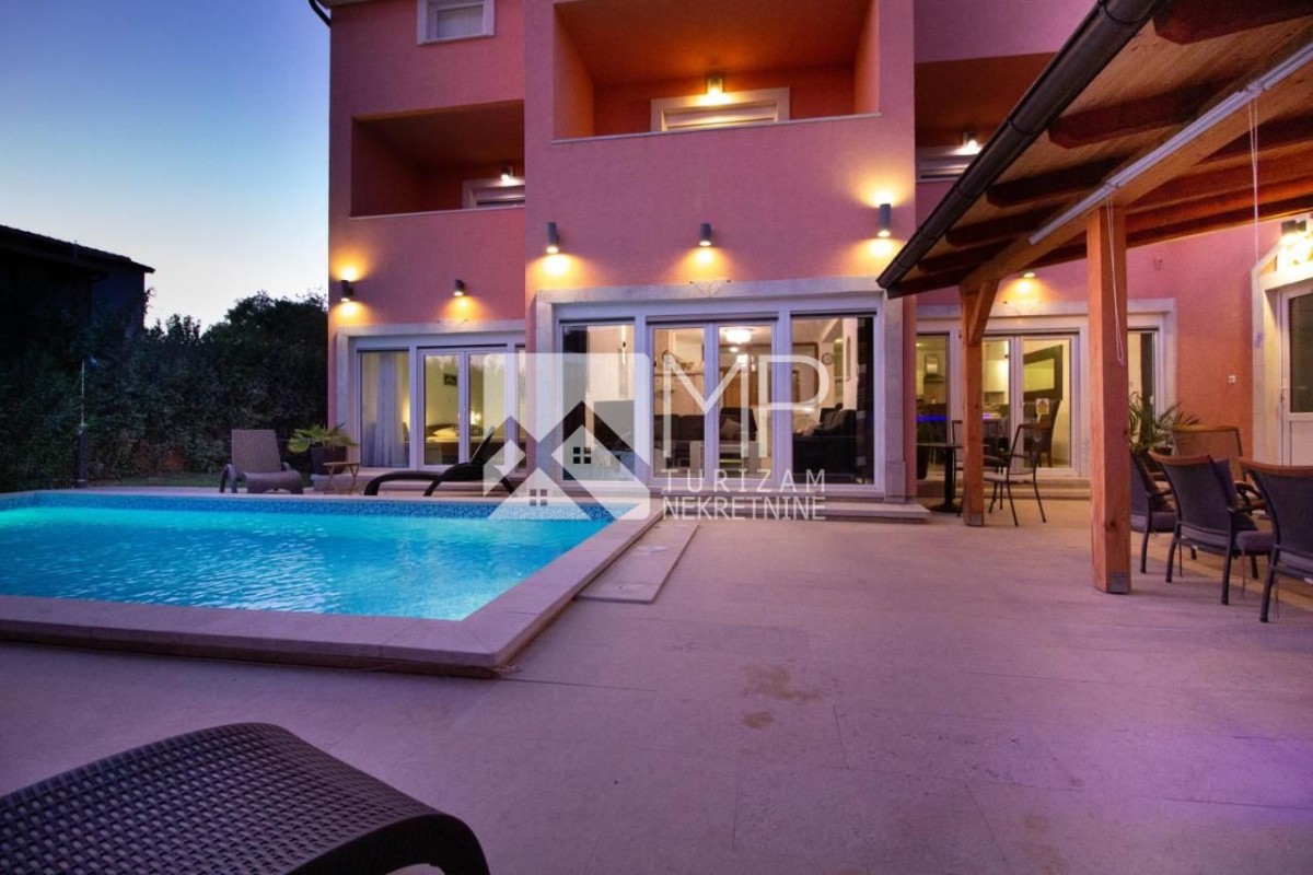 Diese wunderschöne Villa mit Swimmingpool und einzigartigem Blick auf das Meer liegt in der Nähe des Touristentrubels, mitten im Herzen von Medulin und einem Ort, der heute zu den berühmtesten Reisezielen an der Adria zählt.