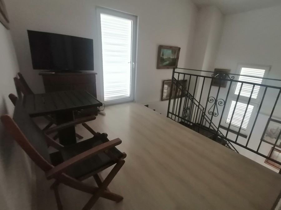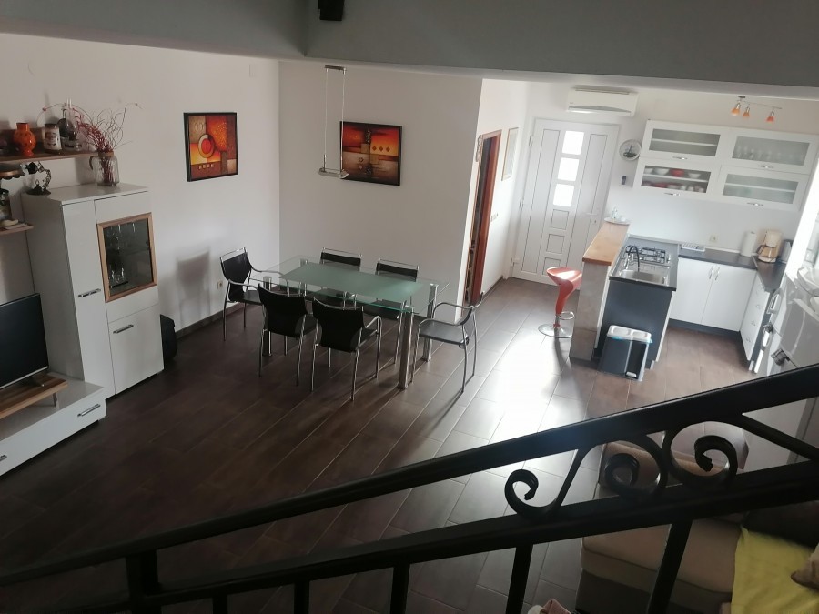 Das Haus erstreckt sich über 2 Etagen, Erdgeschoss besteht aus Wohnzimmer mit Essbereich und Küche, Bad und Terrasse mit Blick auf den Garten mit Grill, Außendusche, Liegestühle, Abstellraum.