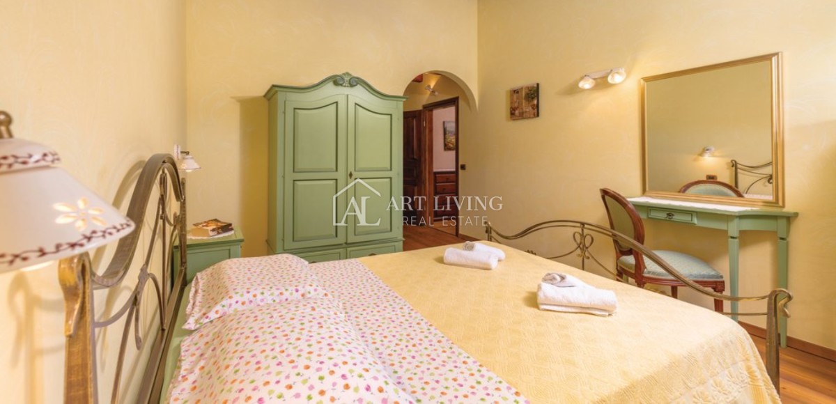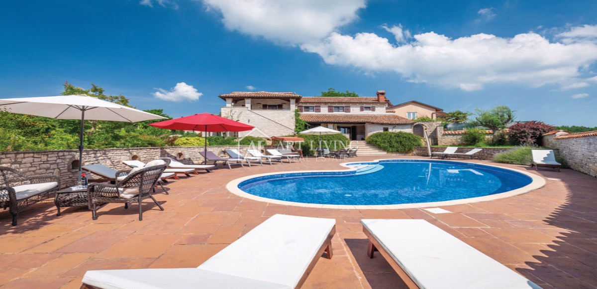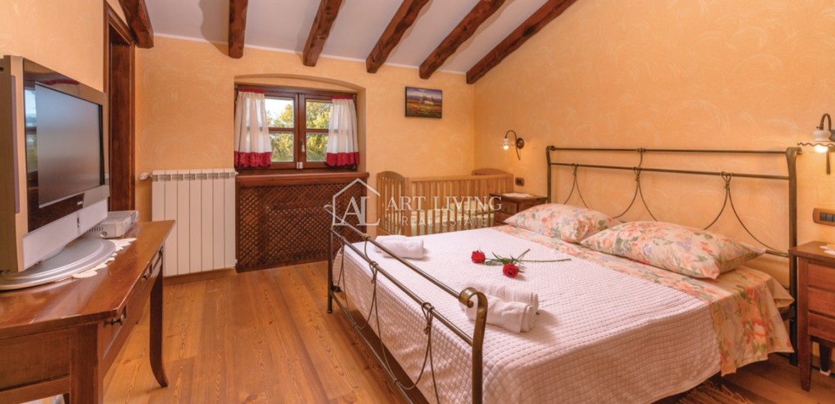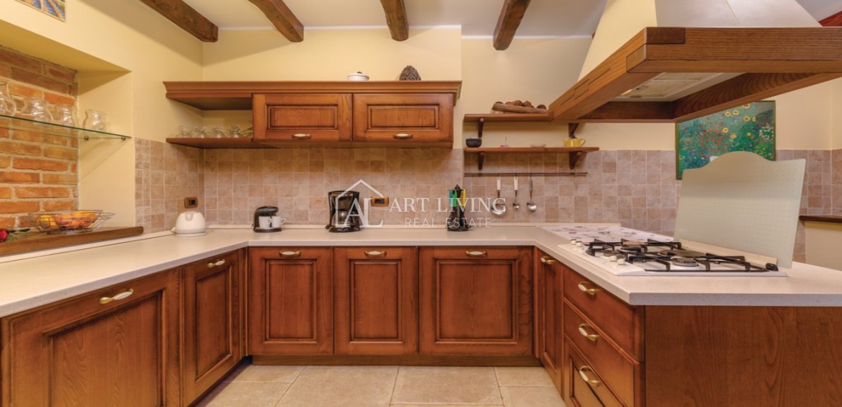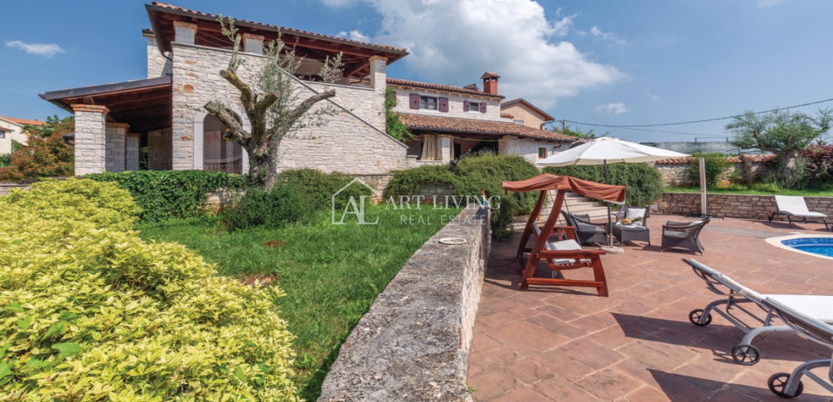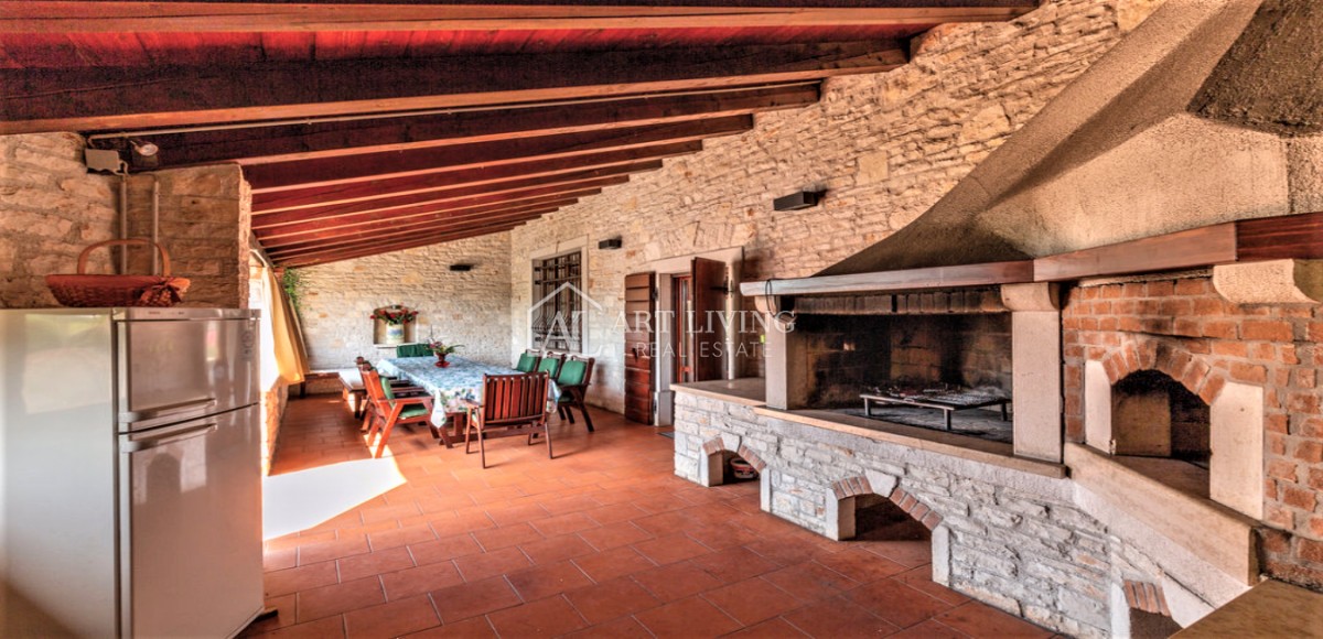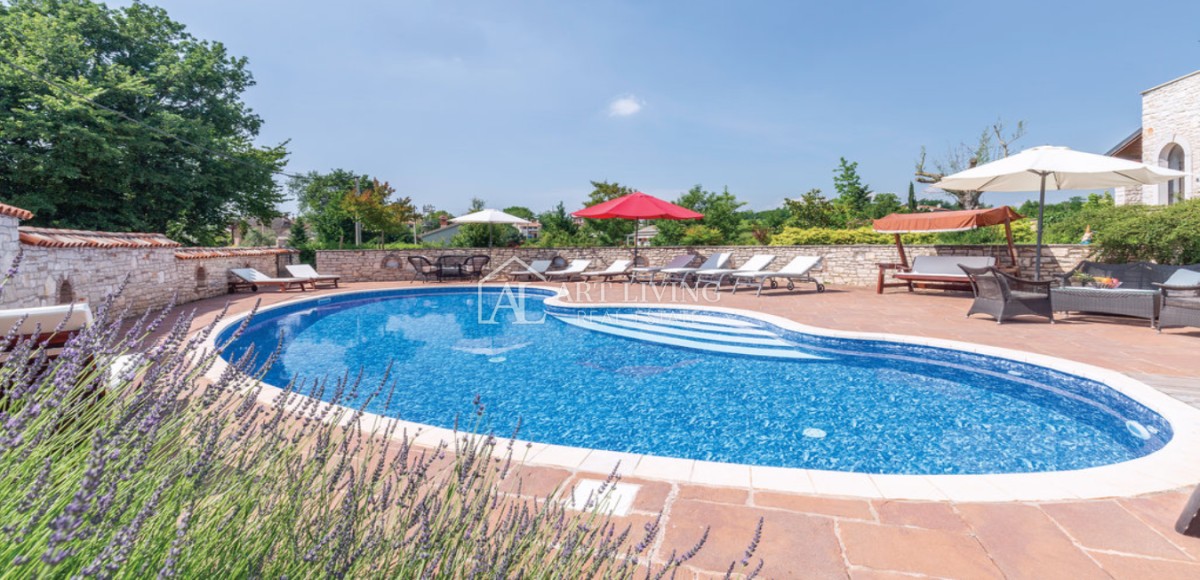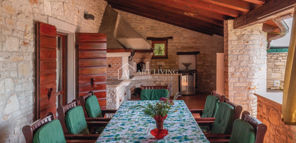 Zum Verkauf steht ein schönes Steinhaus mit Holzdetails und einem großen Pool. Das Haus befindet sich in ruhiger Lage, umgeben von Natur und Grün. Es ist 15 km vom hässlichen Porec und dem Meer entfernt. 40 km vom Grenzübergang und 60 km vom Flughafen (Portorož, Pula,) entfernt.