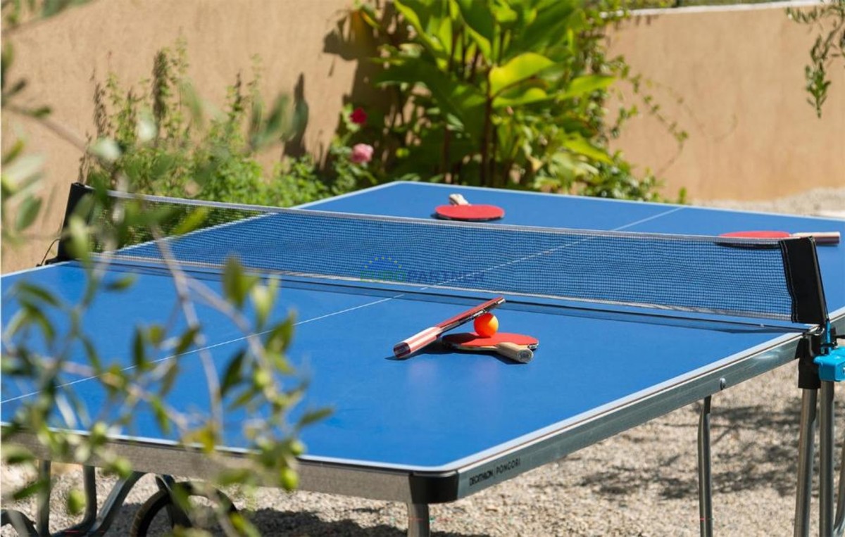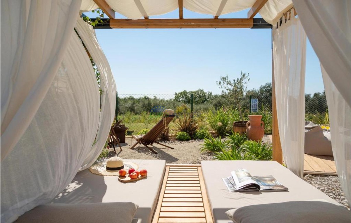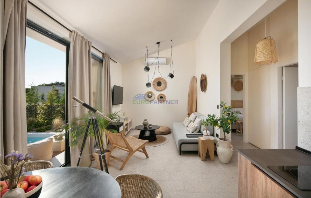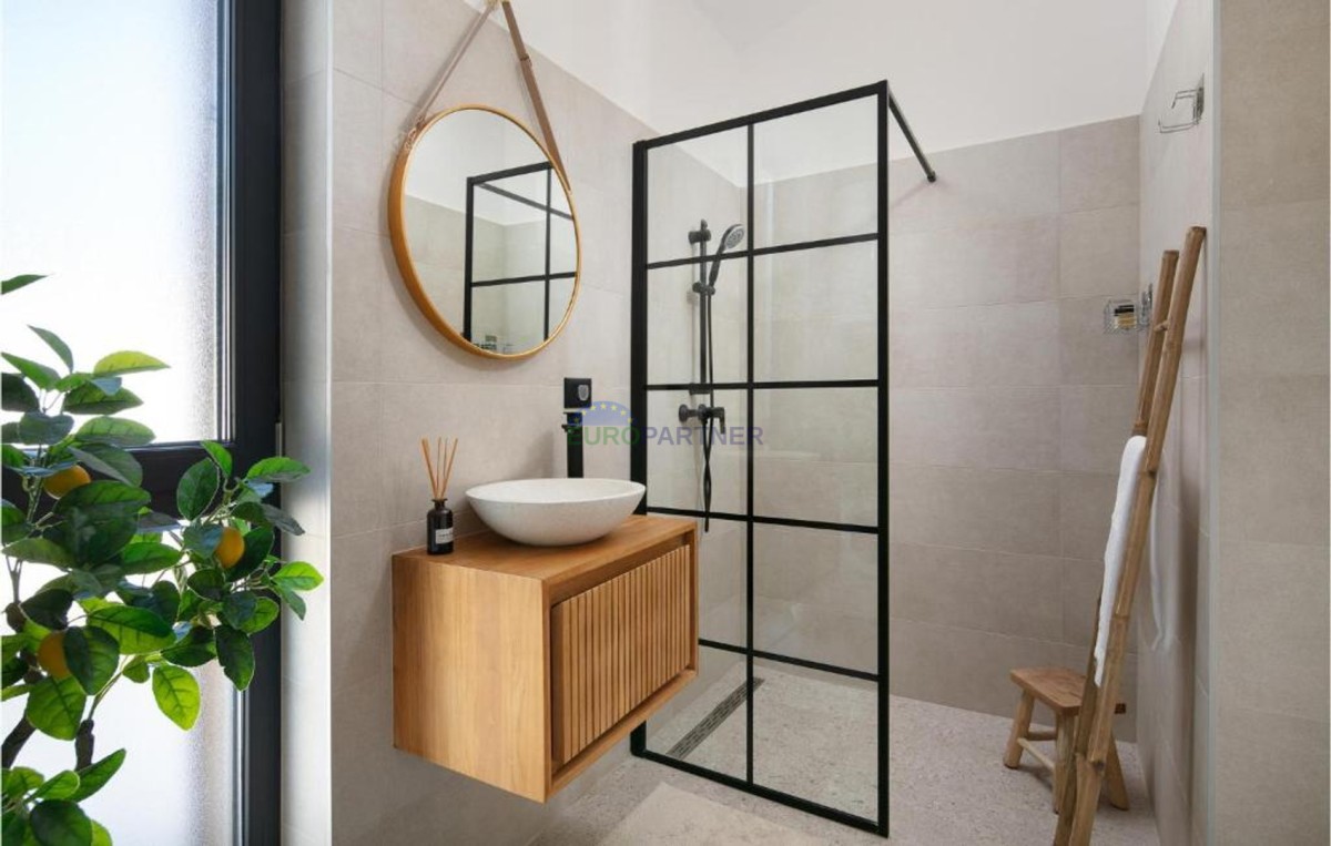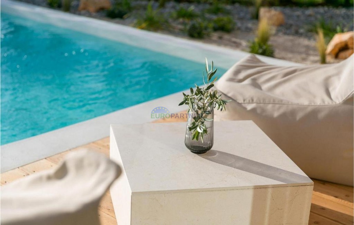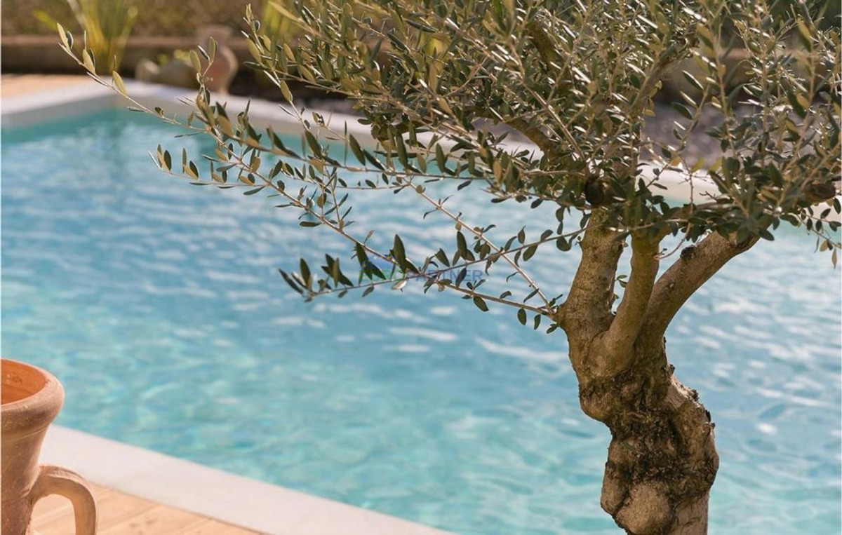 Betreten Sie die ruhige private Terrasse mit bequemem Sitzbereich – ideal für entspannte Morgenstunden oder gemütliche Abende bei Sonnenuntergang. Das Highlight des Außenbereichs ist der wunderschöne 47 m2 große Pool, umgeben von einer eleganten Holzterrasse. Der Garten ist kunstvoll mit dekorativen Kieselsteinen, Olivenbäumen und charmanten Amphoren angelegt und schafft eine mediterrane Oase.