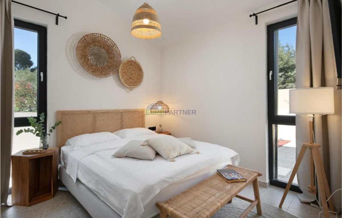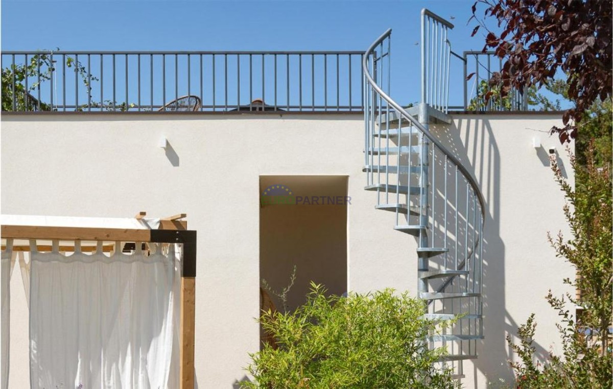 Eine Außentreppe führt auf die Dachterrasse, wo Sie der Blick auf das Meer und die umliegende Natur verzaubern wird – der perfekte Rückzugsort für ruhige Abende oder sonnige Nachmittage.