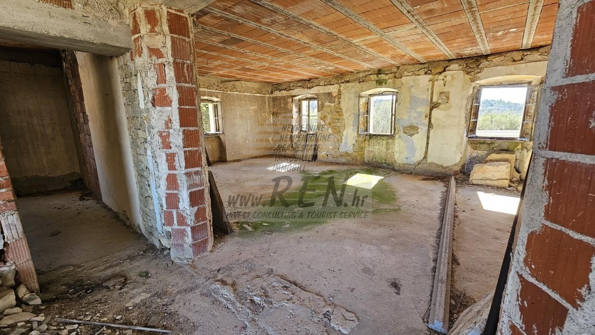 Das Haus verfügt über insgesamt 300 m2, Grundstück hat 830 m2, ist 15 Min. (20000m) vom Meer und vom schönen Naturstrände, 10 min. (5000m) entfernt sind Sie vom Zentrum von Buje. Das Haus verfügt über ein Erdgeschoss und erste Stock mit Dachboden. Das Haus liegt in einer ruhigen und schönen Lage inmitten der Natur gelegen, Natur un MeerBlick. Kompletter Renovierungsbedarf.