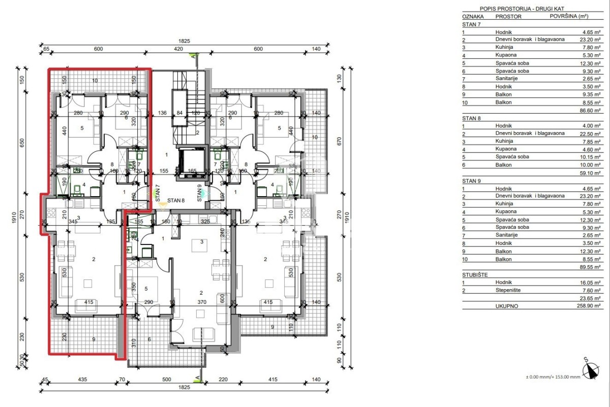 Die Zimmerei wird aus antarktischem PVC mit dreischichtigem Glas und eingebauten Moskitonetzen bestehen, während die Sanitäranlagen und Fliesen erstklassig sein werden. Im Preis inbegriffen ist die Vorbereitung für eine Fußbodenheizung mit Gleichstrom von 12 V. Die Fassade wird energieeffizient sein – 10 cm Styropor, während die Struktur aus Porotherm-Ziegeln mit einer Dicke von 25 cm bestehen wird. Jedes Zimmer wird über eine Klimaanlage verfügen.