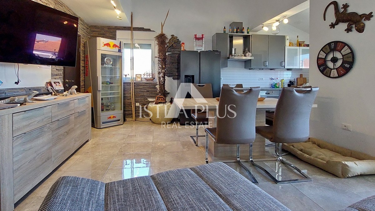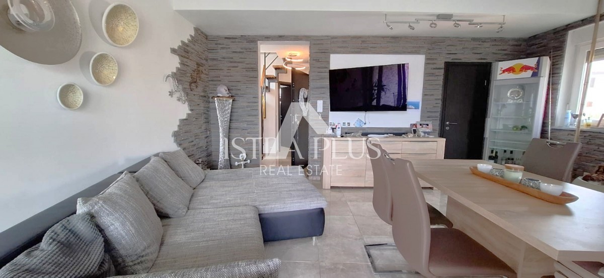S311 Wir bieten eine schöne Wohnung in Funtana, einer charmanten istrischen Stadt direkt am Meer und wunderschönen Stränden. Die Wohnung befindet sich im ersten Stock und erstreckt sich über zwei Etagen, mit einer Gesamtfläche von 75,70 m². Raumaufteilung: Die untere Etage besteht aus einem Flur und einem Badezimmer Ein Schlafzimmer mit Galerie – eine ideale Ecke für Kinder, ein zusätzlicher Schlafraum oder ein Spielzimmer Ein geräumiges, helles Wohnzimmer, verbunden mit Küche und Esszimmer, Ausgang zu einer großen überdachten Terrasse mit Esstisch Praktisch gelegener Abstellraum/Speisekammer neben der Küche Im Obergeschoss befindet sich ein großes Schlafzimmer mit eigenem Bad Hof und zusätzliche Einrichtungen: Gehört zu dem Teil des Hofes, in dem es sich befindet Gartenschuppen/Werkzeugkasten und Stauraum für zusätzliche Dinge - Die Möglichkeit, den Raum als Grillzone, Garten zum Entspannen oder nach Ihren eigenen Wünschen zu dekorieren Der Parkplatz im Hof ​​gehört zur Wohnung. Die Wohnung ist voll klimatisiert (Heizung und Kühlung), wird möbliert verkauft und ist sofort bezugsfertig!