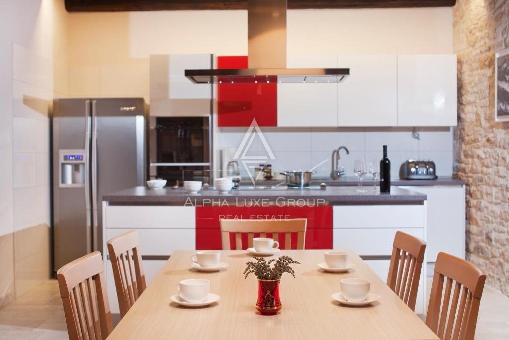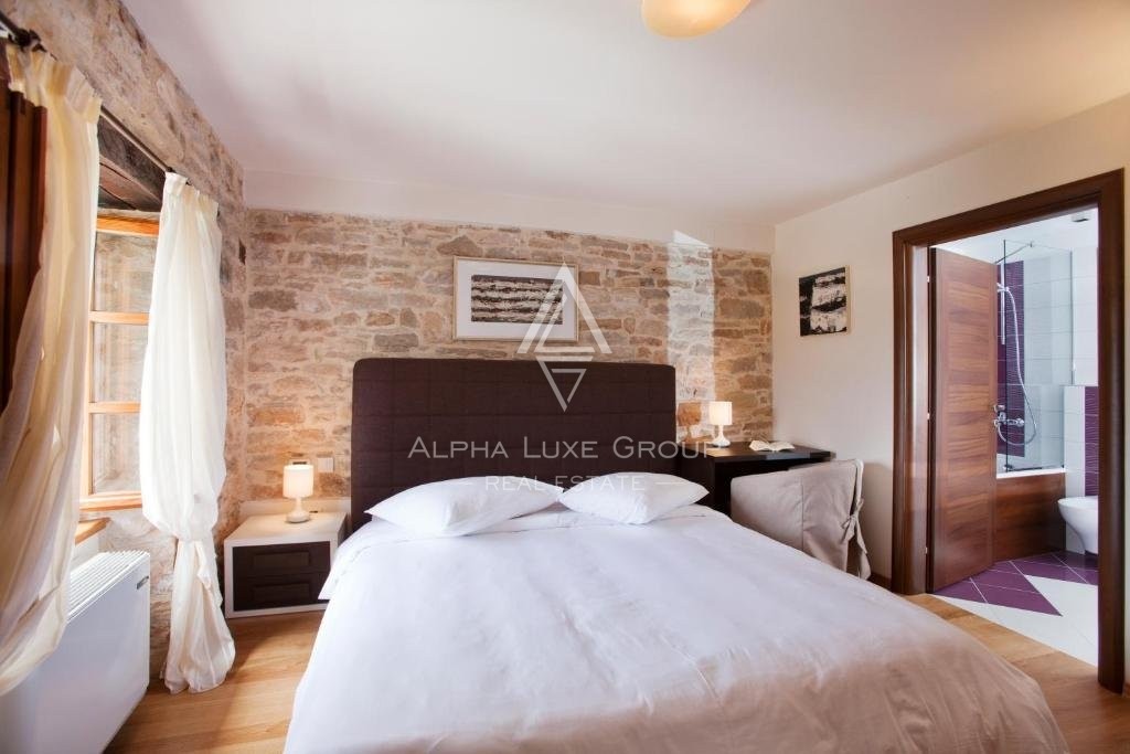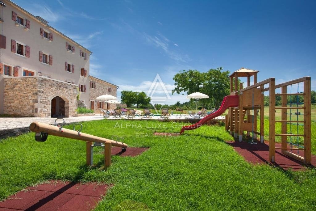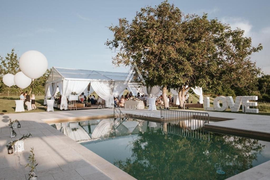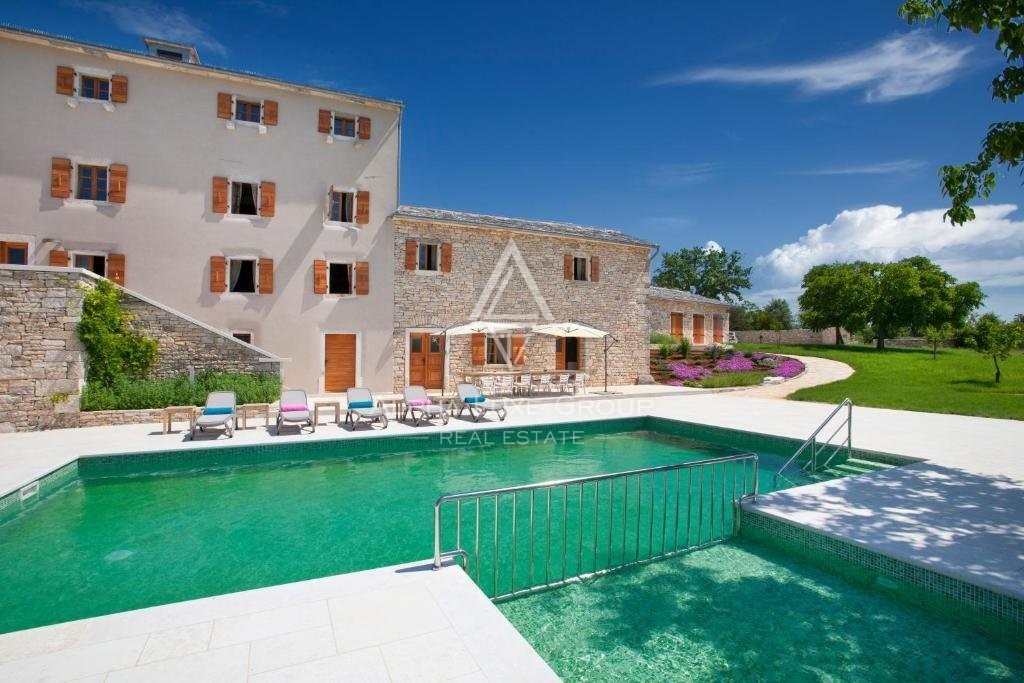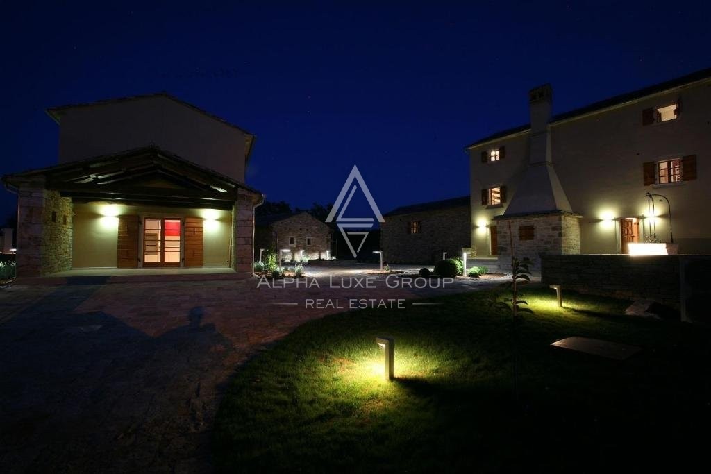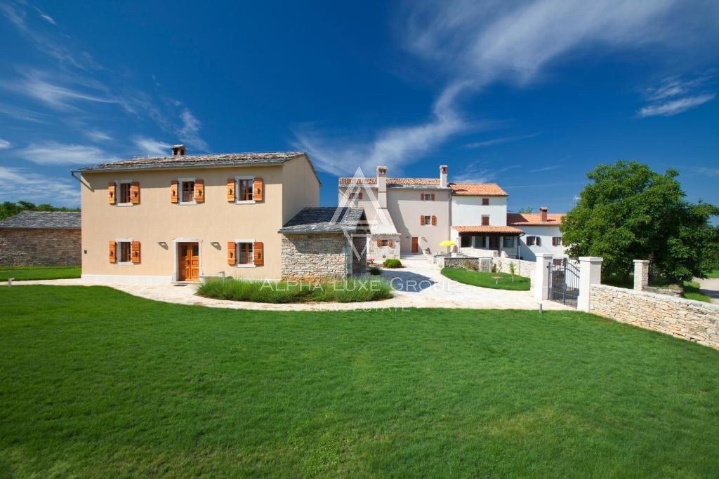 Dieses vielseitige Anwesen eignet sich perfekt für den privaten Gebrauch, als Ferienvermietung oder für die Ausrichtung von Veranstaltungen wie Hochzeiten, Teambuilding-Retreats und anderen Anlässen. Das Hauptgebäude aus Stein und zwei kleinere Nebengebäude wurden sorgfältig renoviert und verbinden die traditionelle istrische Architektur mit modernen Annehmlichkeiten. Insgesamt bietet das Anwesen sieben Schlafzimmer, sechs Badezimmer und vier zusätzliche WCs. Das Haupthaus verfügt über zwei Innenhöfe, jeweils mit einer Küche und einem Essbereich, sowie zwei geräumige Wohnzimmer. Ein drittes Wohnzimmer mit Essbereich befindet sich in einem der kleineren Gebäude.