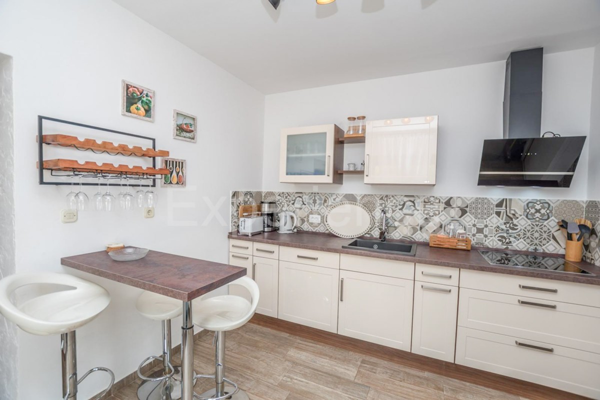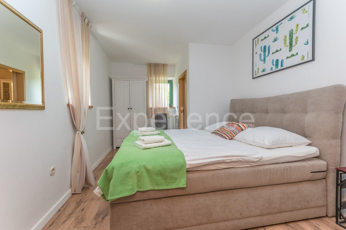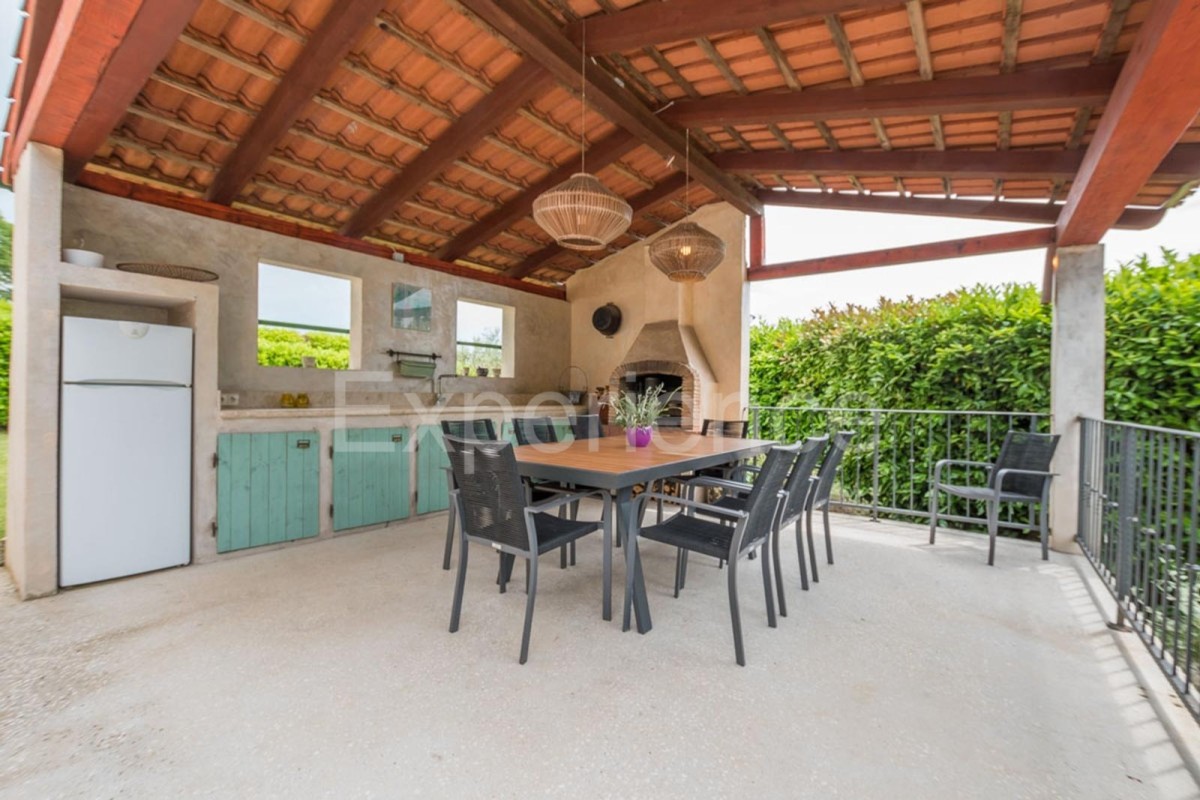 In einem ruhigen istrischen Dorf umgeben von viel Grün, nur 14 km vom Meer und dem Zentrum von Poreč entfernt, steht dieses charmante Einfamilienhaus mit einer Fläche von 150 m² zum Verkauf – eine perfekte Mischung aus traditioneller Architektur und modernem Komfort. Das im authentischen istrischen Stil erbaute Haus erstreckt sich über zwei Etagen, mit einer sorgfältig gestalteten Aufteilung, die maximalen Komfort gewährleistet.• Im Erdgeschoss befinden sich Vorraum, Wohnzimmer mit Esszimmer, Küche mit Zugang zur Terrasse, Schlafzimmer mit eigenem Badezimmer und Toilette. • Im Obergeschoss befinden sich drei komfortable Schlafzimmer mit Badezimmern. ExterieurIm sorgfältig angelegten Garten gibt es ein Schwimmbad, überdachte Terrasse mit Sommerküche und Grill, und Parkplatz für zwei Autos. Die Villa ist mit Zentralheizung und Inverter-Klimaanlagen in jedem Zimmer ausgestattet und sorgt so das ganze Jahr über für einen angenehmen Aufenthalt. Diese Immobilie vereint den zeitlosen Charme Istriens mit den Annehmlichkeiten des modernen Wohnens – eine ideale Gelegenheit für diejenigen, die Ruhe und Privatsphäre suchen, sei es als Eigenheim, Urlaubsort oder als Investition in den Tourismus.