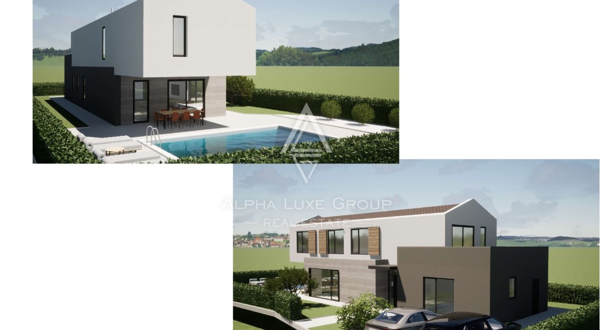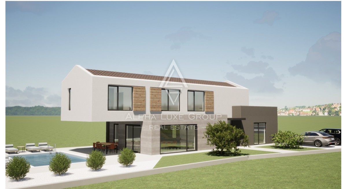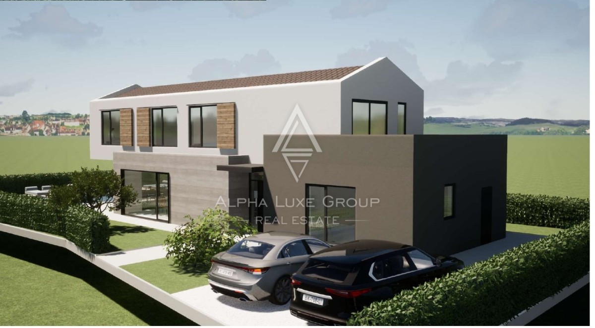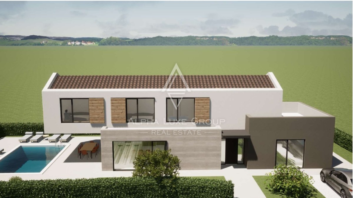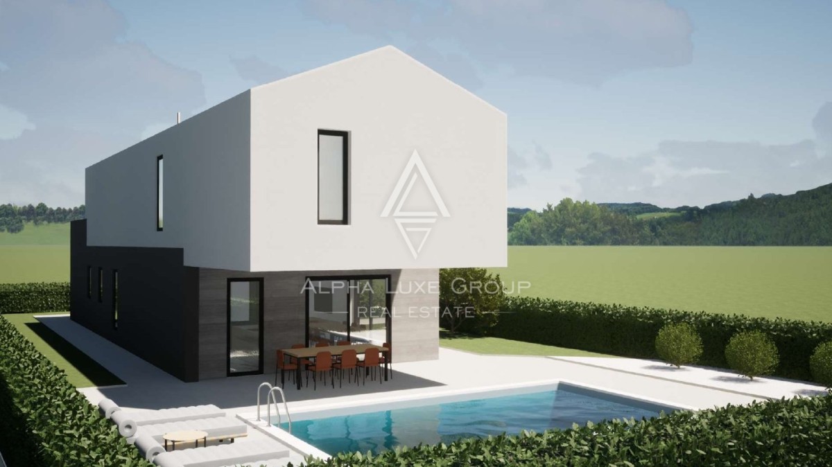 In der ruhigen istrischen Landschaft, nur 15 km entfernt von der lebendigen Stadt Poreč, entsteht eine zeitgenössische Villa, die den Inbegriff modernen Wohnens in einer idyllischen Umgebung bietet. Die Architektur dieser Villa harmoniert perfekt mit ihrer Umgebung und verfügt im Erdgeschoss über einen offenen Grundriss, der den Wohnbereich nahtlos mit der Küche und dem Essbereich verbindet, neben einem Schlafzimmer mit eigenem Bad, einem WC und einem Hauswirtschaftsraum. Das Design umfasst großflächige Glaswände in den Wohn- und Essbereichen, die für reichlich natürliches Licht und ein Gefühl der Offenheit sorgen. Eine elegante Treppe führt in das erste Stockwerk zu drei luxuriösen Schlafzimmern, jedes mit einem eigenen, modernen Badezimmer und Terrassen, die einen Blick auf die grüne Umgebung und den Pool bieten.