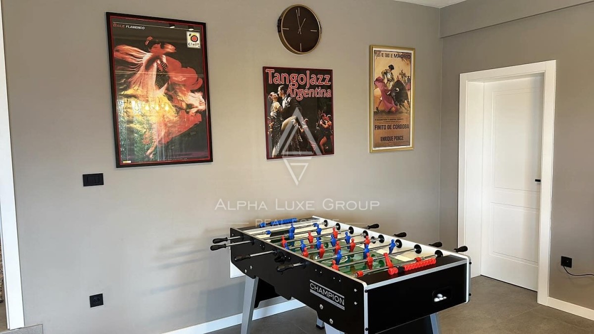 Die Innenausstattung mit luxuriösen Natuzzi-Möbeln sorgt für höchsten Komfort und Stil. Der gepflegte Garten von 2.459 m² verfügt über einen beheizten Pool (50 m²), eine Sommerküche, eine überdachte Terrasse, einen Kinderspielplatz mit Schaukeln und ein Trampolin – ein mediterraner Rückzugsort in vollkommener Privatsphäre.