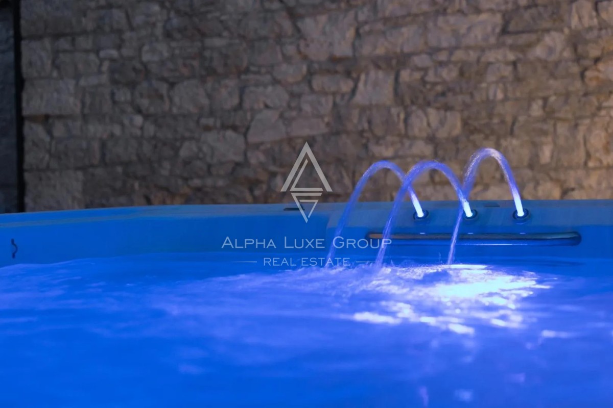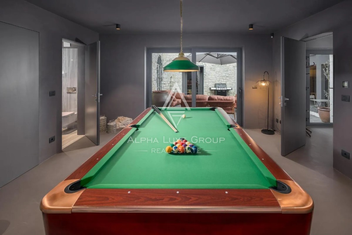 Die Immobilie erstreckt sich über zwei Ebenen und umfasst ein helles Wohnzimmer, eine gut ausgestattete Küche mit Essbereich, vier großzügige Schlafzimmer mit eigenen Bädern, einen separaten Billardraum, zwei Gäste WCs, einen Waschraum sowie zusätzliche Technikräume. Der durchdachte Grundriss sorgt für Wohnkomfort das ganze Jahr über und bewahrt zugleich die einladende Wärme eines traditionellen istrischen Hauses.