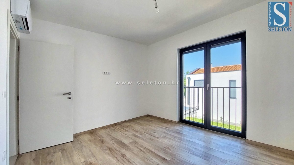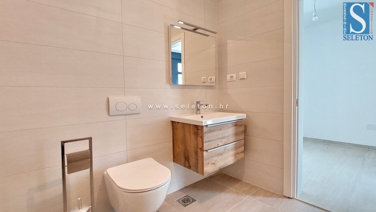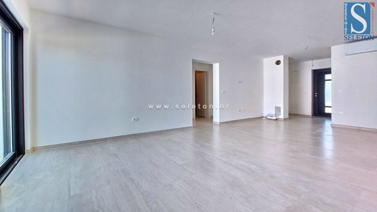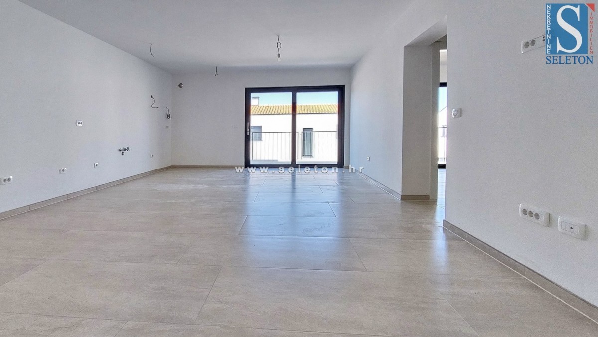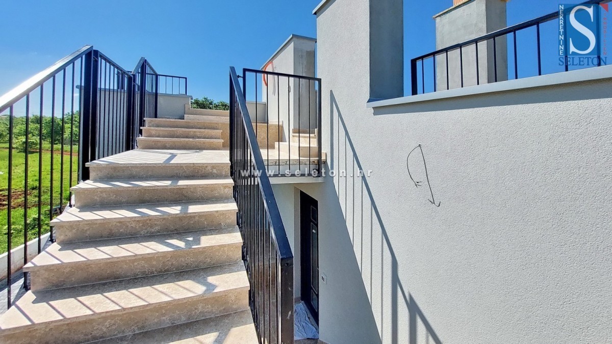 Wohnung zum Verkauf von 83,80 m2, besteht aus Wohnzimmer, Küche, Esszimmer, Terrasse, zwei Schlafzimmern, Bad und Gästetoilette, hat einen Kamin, Klimaanlage im Wohnzimmer und Schlafzimmer und Fußbodenheizung im Badezimmer. Die Wohnung befindet sich im ersten Stock, hat eine Dachterrasse von 56 m2 mit Meerblick und zwei Parkplätze. Die Wohnung befindet sich ca. 5 km vom Meer/Strand und ca. 6 km vom Zentrum von Porec entfernt, bis zum ersten Geschäft und Restaurant sind es ca. 1 km.