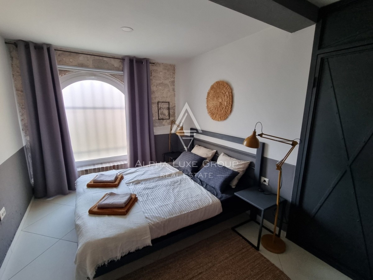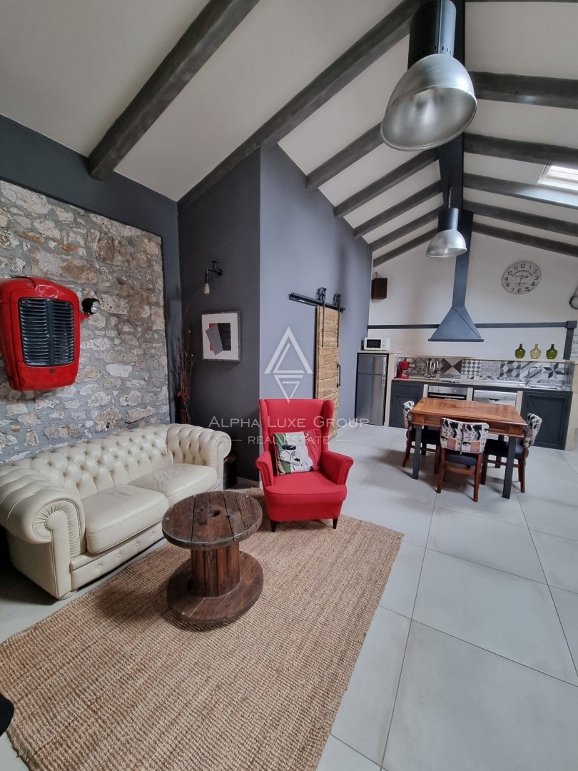 Im Erdgeschoss befinden sich eine stilvolle Küche mit Essbereich, ein gemütliches Wohnzimmer und ein Badezimmer. Eine überdachte Terrasse mit Kamin führt zu einem privaten Hof mit Swimmingpool, ideal für Entspannung und gesellige Stunden. Im Untergeschoss gibt es zwei Schlafzimmer, ein Badezimmer und einen zusätzlichen Raum, der als Wellnessbereich, Abstellraum oder begehbarer Kleiderschrank genutzt werden kann. Beheizt wird das Haus mit elektrischen Heizkörpern, und es besteht die Möglichkeit, eine Klimaanlage für Heizung und Kühlung zu nutzen. Das Haus wurde 2021 vollständig renoviert und wird möbliert verkauft, sodass es sofort bezugsfertig ist.