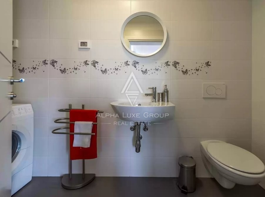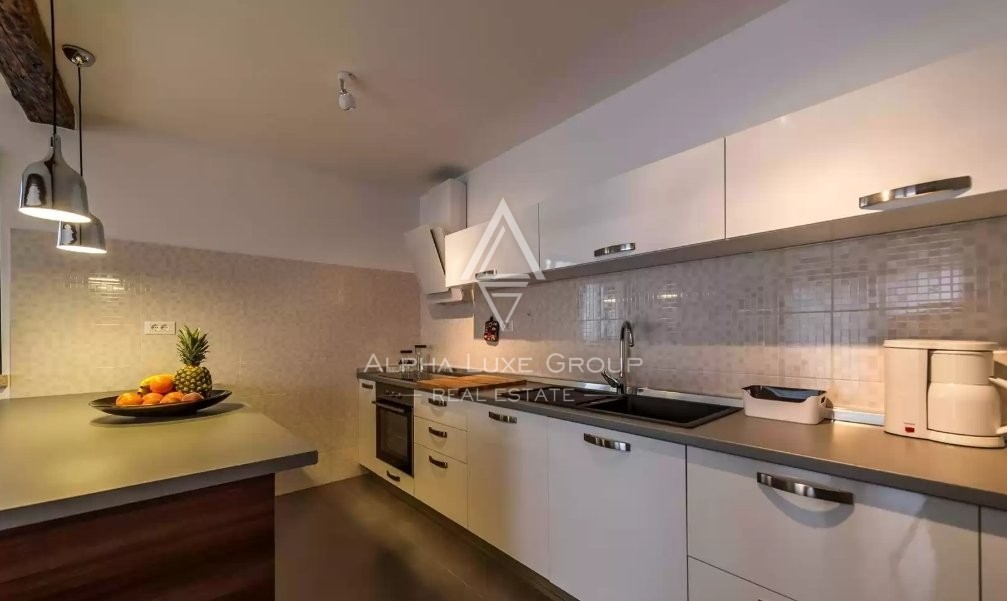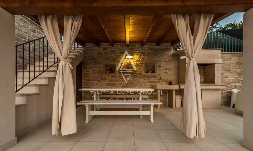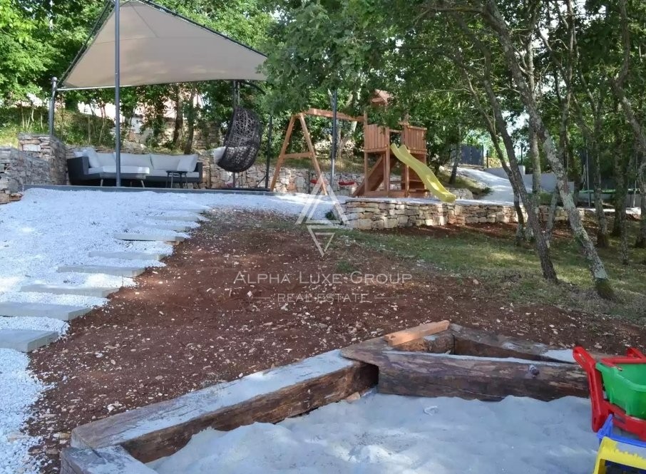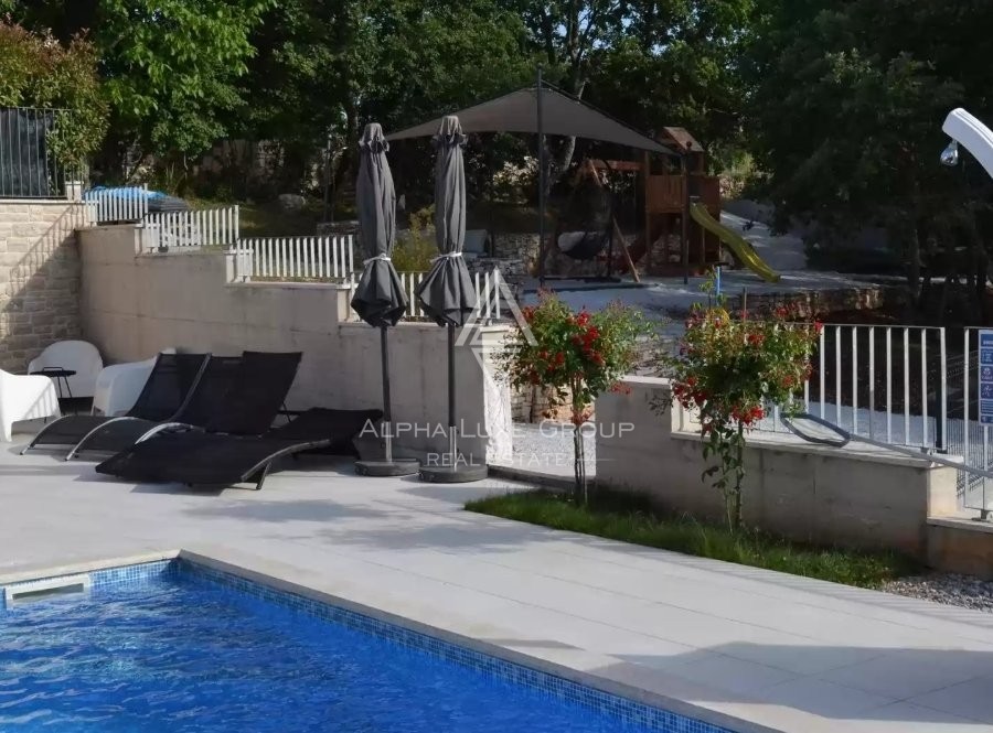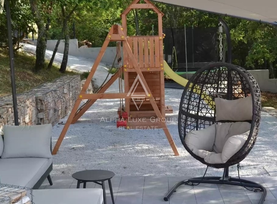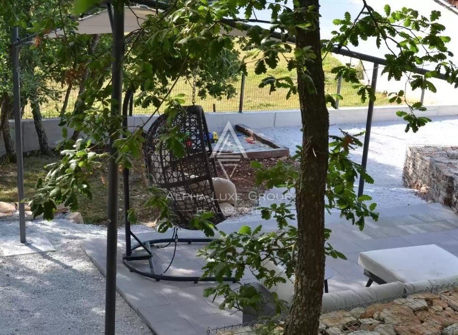 Das Haus ist mit einem offenen Grundriss gestaltet, der Bewegungsfreiheit im Inneren gewährleistet. Der Außenbereich umfasst eine Sommerküche, einen wunderschön angelegten Garten und einen Kinderspielplatz, der perfekte Rahmen für Familienmomente und Aktivitäten im Freien bietet.