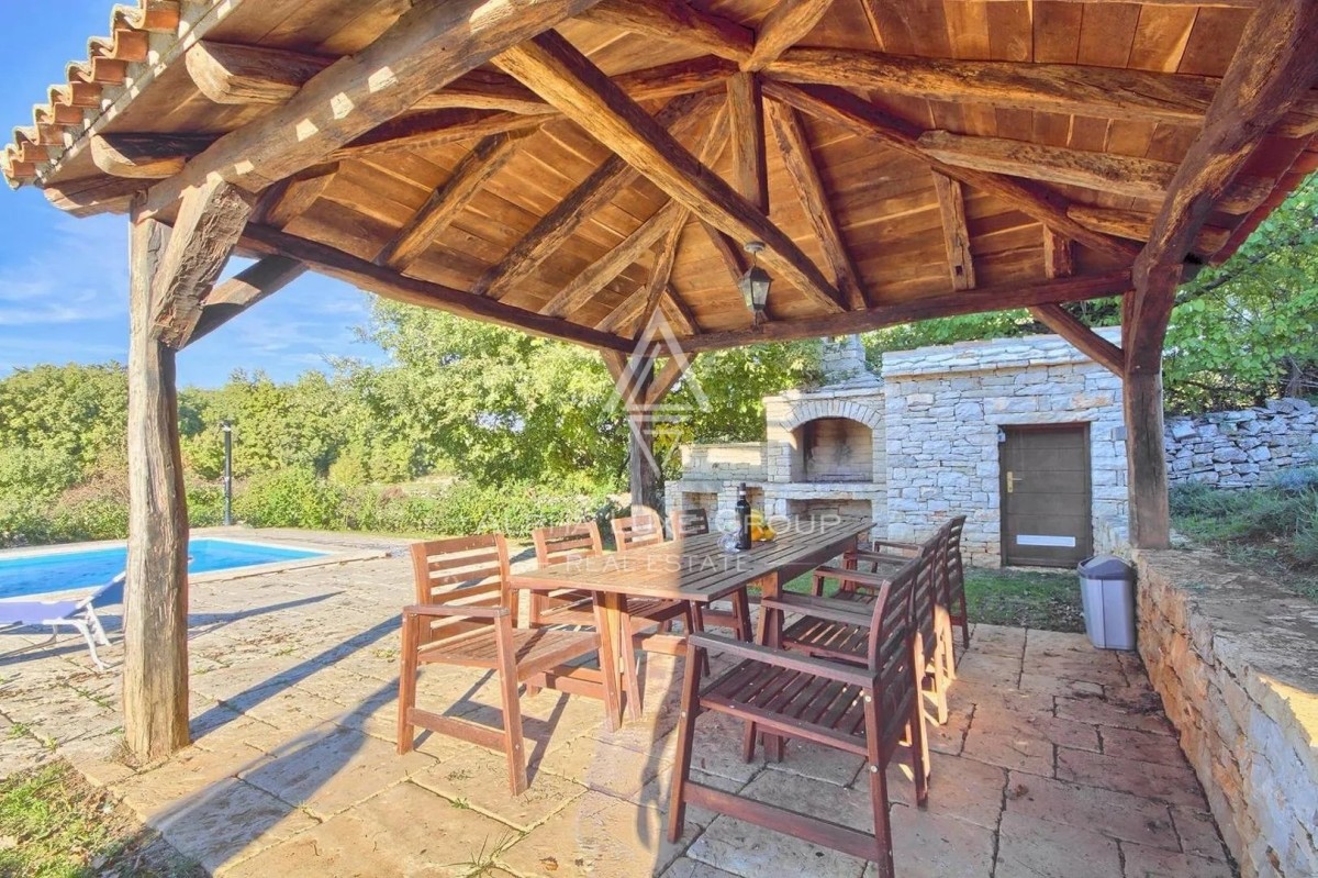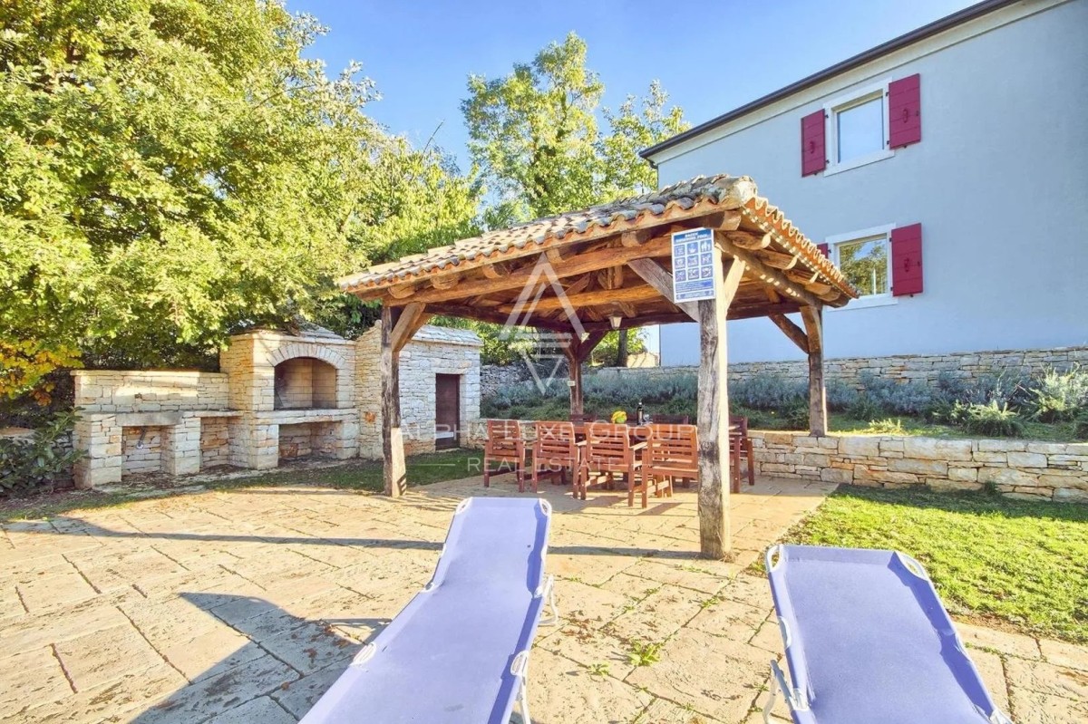 In einem ruhigen Dorf in der Nähe von Poreč liegt diese wunderschöne istrische Steinvilla, die den zeitlosen Charme traditioneller Architektur mit modernem Wohnkomfort verbindet. Die Villa ist sorgfältig gestaltet und besteht aus zwei separaten Apartments, jedes mit zwei geräumigen Schlafzimmern, einem Badezimmer und einer separaten Toilette, ideal für Familien oder Gäste.
