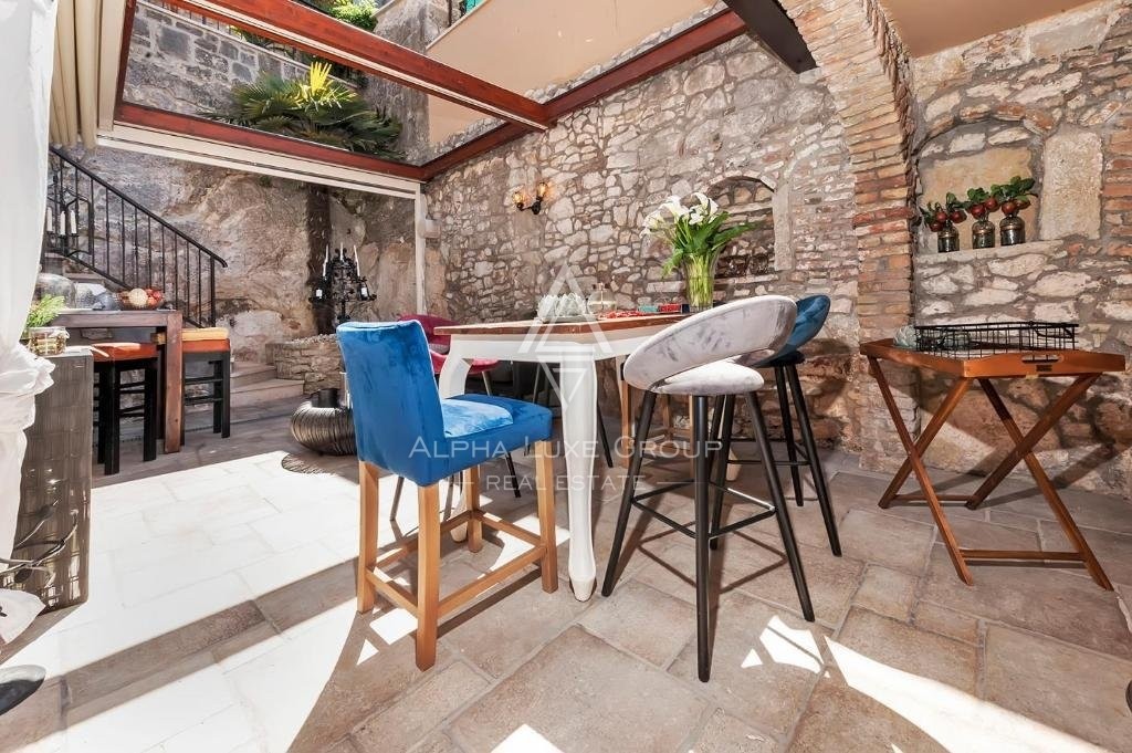 Diese exquisit gestaltete Villa im Zentrum der historischen Altstadt von Rovinj bietet ein außergewöhnliches Wohnerlebnis mit einem seltenen Garten, ein echtes Juwel in dieser Gegend. Die Immobilie erstreckt sich über 220 m² und verfügt über fünf wunderschön eingerichtete Schlafzimmer, jedes mit eigenem Bad, die Luxus und Komfort perfekt vereinen.