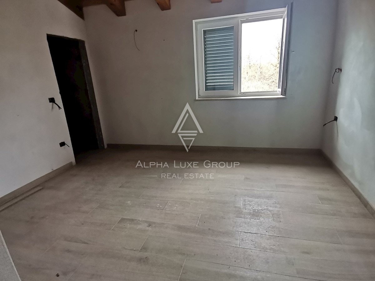 Am Rande eines kleinen, ruhigen Dorfes in der Nähe von Višnjan gelegen, vereint dieses freistehende Haus Ruhe und Funktionalität. Umgeben von üppigen Wiesen und Bäumen bietet die Immobilie einen idealen Rückzugsort mit modernem Komfort und großzügigem Außenbereich.