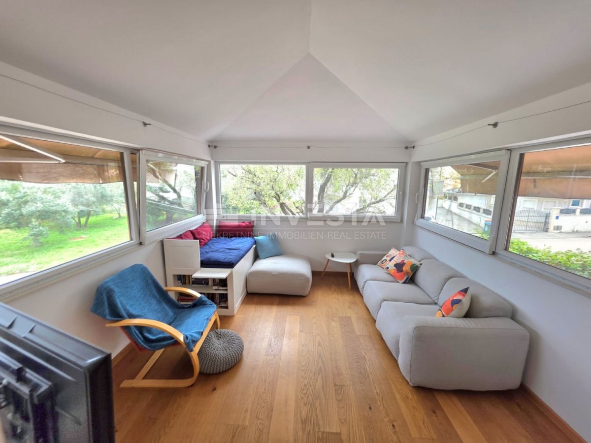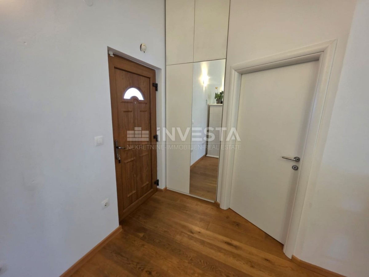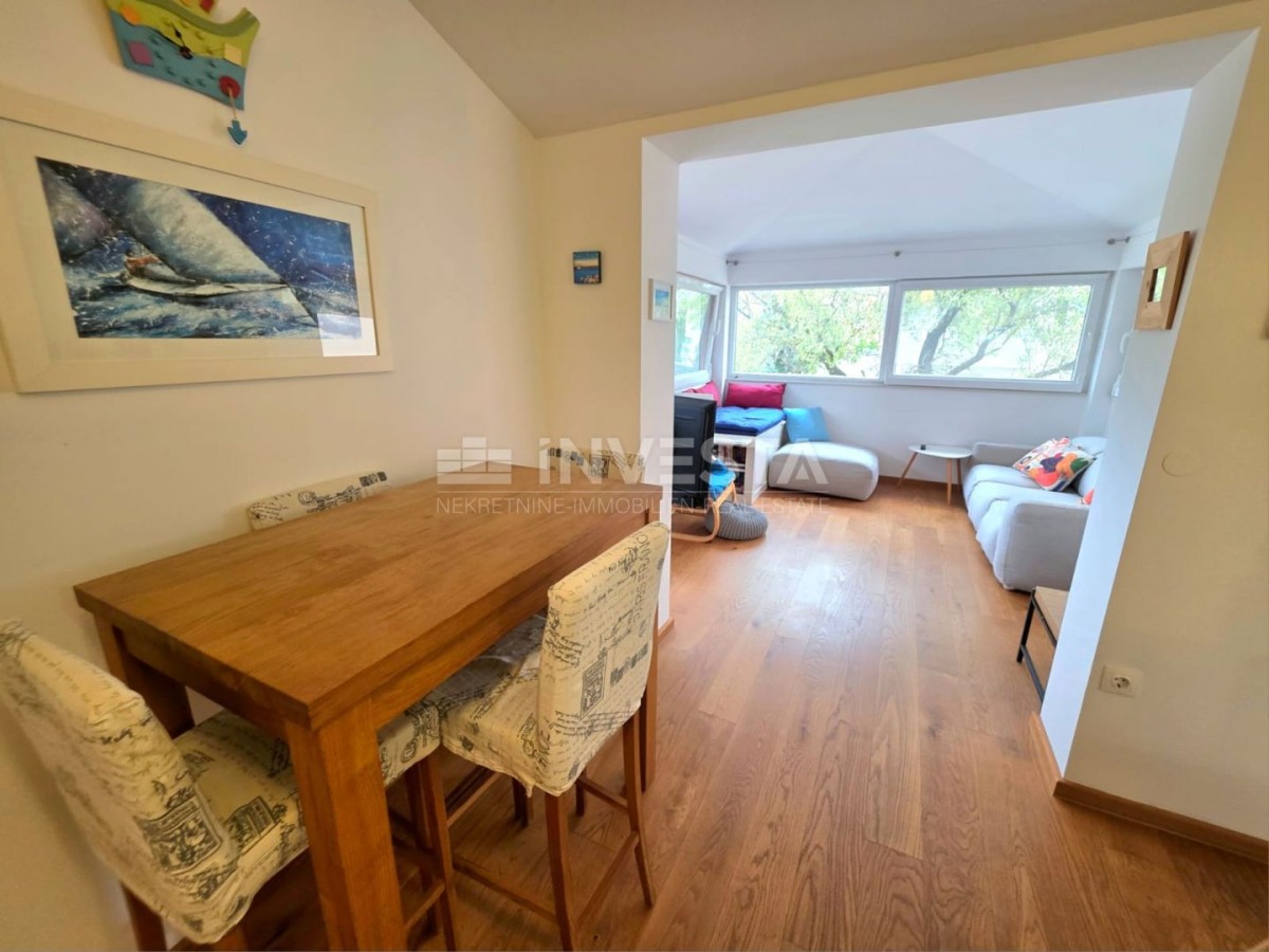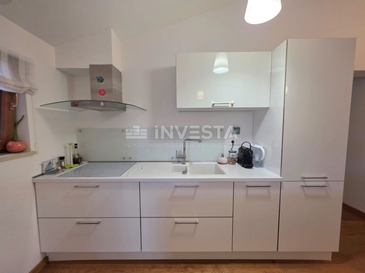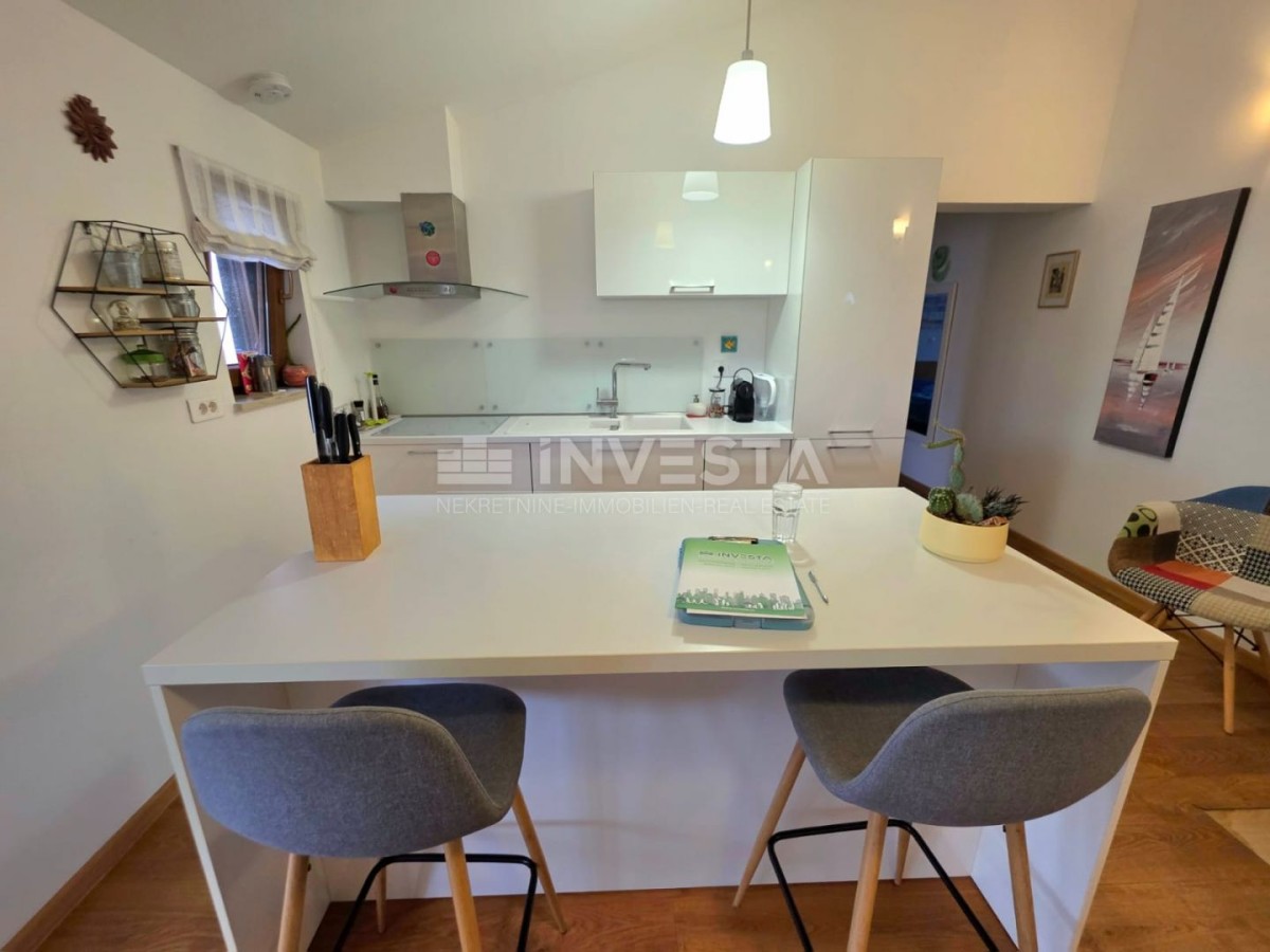 Charmante, voll möblierte Wohnung mit 63,35 m² zu verkaufen, gelegen im ersten Stock eines kleinen Mehrfamilienhauses mit insgesamt drei Wohnungen, in einem ruhigen Teil von Štinjan, nur 1500 Meter vom Meer entfernt.