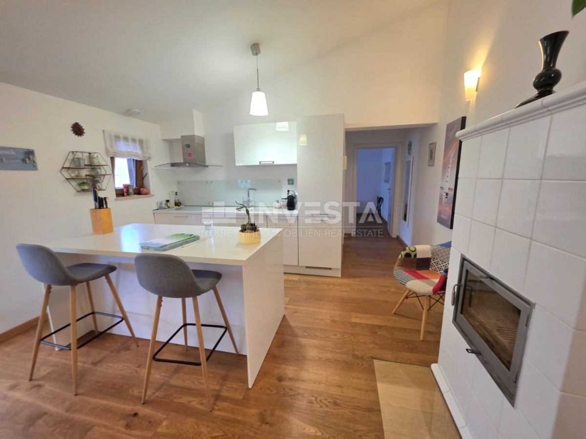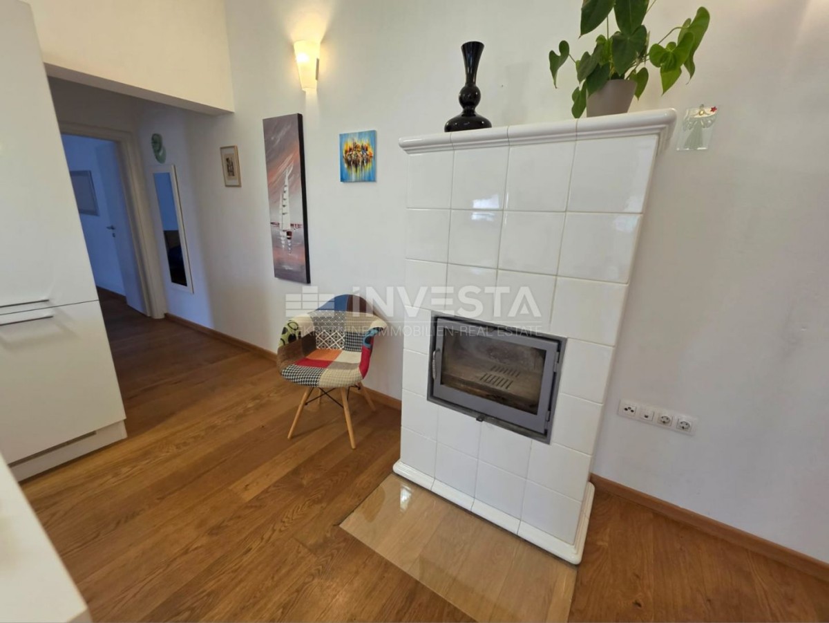 Es gibt zwei Schlafzimmer – ein größeres mit Doppelbett und ein kleineres, ideal als Kinder- oder Arbeitszimmer. Das Badezimmer ist funktional eingerichtet und mit einer Dusche ausgestattet. Für zusätzliche Wärme sorgt ein Kachelofen, während die Klimaanlage für angenehme Temperaturen in den Sommermonaten sorgt. Alle Fenster sind mit Fliegengittern versehen, und das Parkett in allen Räumen außer dem Badezimmer trägt zum Wohlfühlambiente und einem heimischen Gefühl bei.