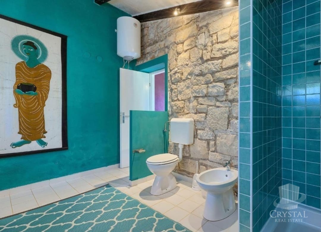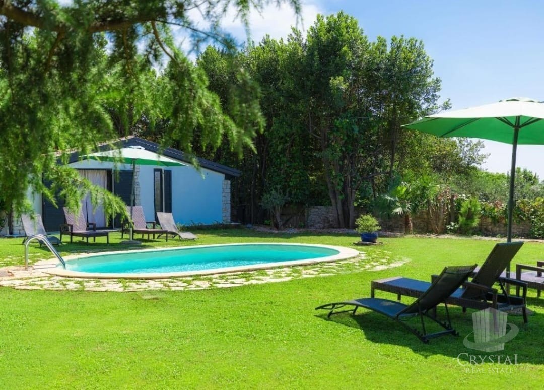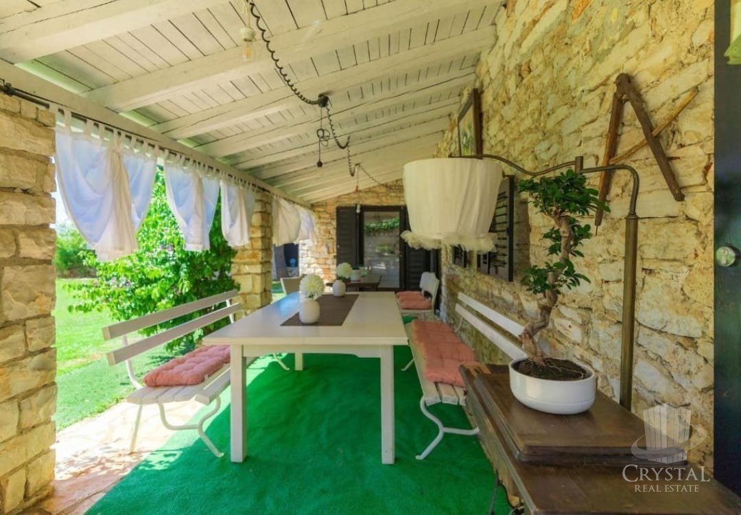 Genießen Sie das Leben nur 250 Meter vom Strand und 2500 Meter vom Zentrum von Umag entfernt. Das Haupthaus verfügt über ein geräumiges Wohnzimmer mit Kamin, ein Esszimmer, eine voll ausgestattete Küche, ein Hauptschlafzimmer, ein modernes Badezimmer, eine zusätzliche Toilette, ein weiteres Zimmer mit Garderobe und eine große überdachte Terrasse.