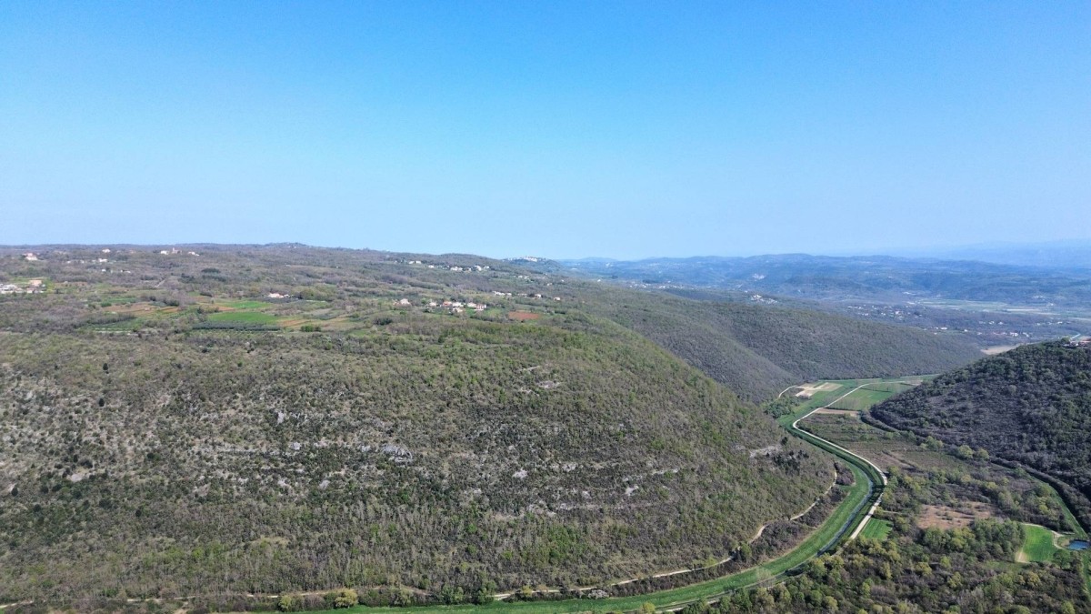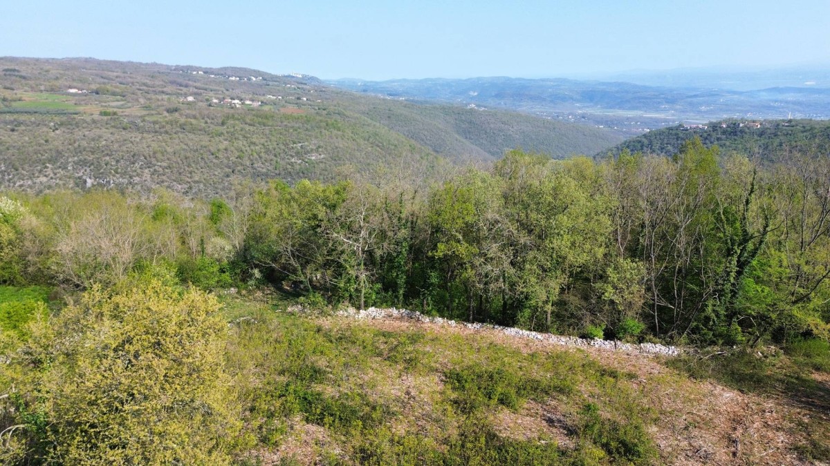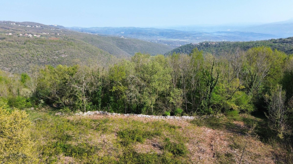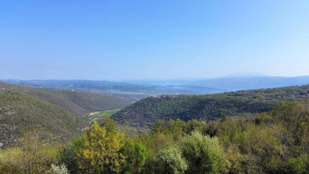 Bauggrundstück mit einer Fläche von 823 m2, gelegen an einem ruhigen Standort mit offenem Blick auf die Učka, die istrischen Städte in der Ferne und die wunderschöne Natur.