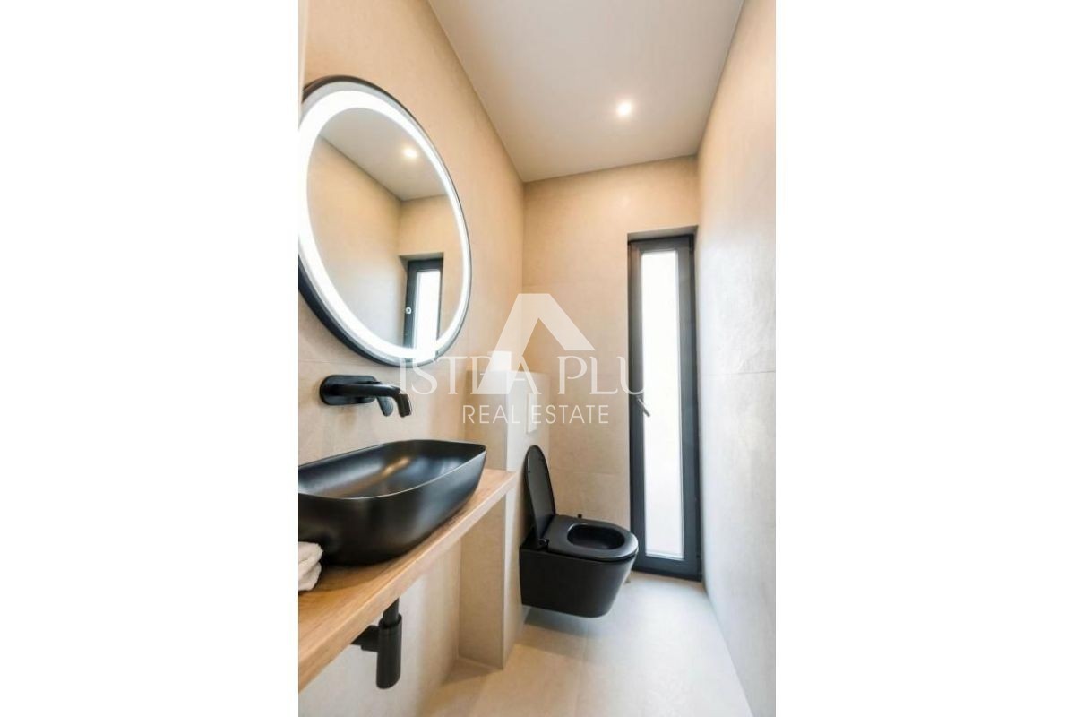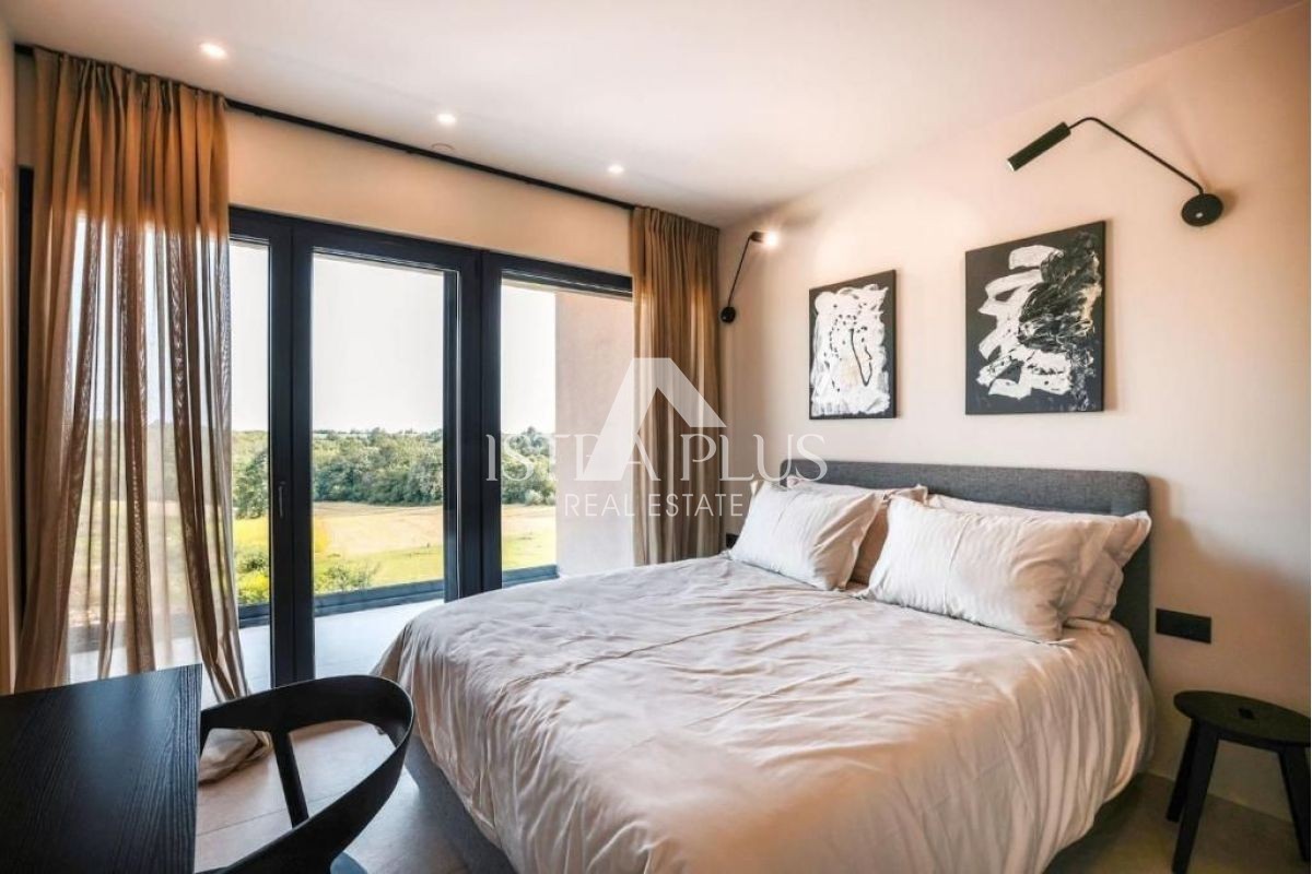 Die Villa liegt nicht weit von Poreč entfernt, nur 900 m vom Meer entfernt. Sie verfügt über ein spektakuläres Äußeres und einen wunderschön angelegten Garten von 600 m² mit Blick auf das umliegende Grün und die Natur. Die Villa erstreckt sich über eine Fläche von 160 m² und besteht aus 2 Etagen.